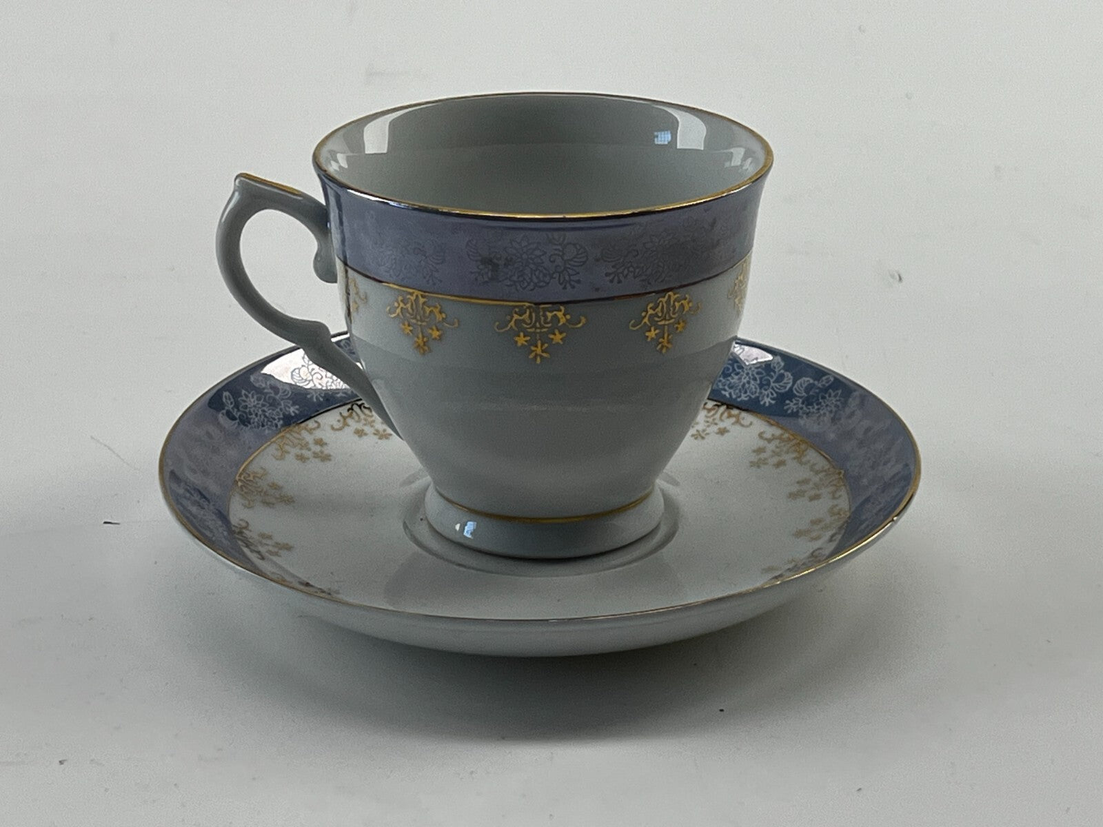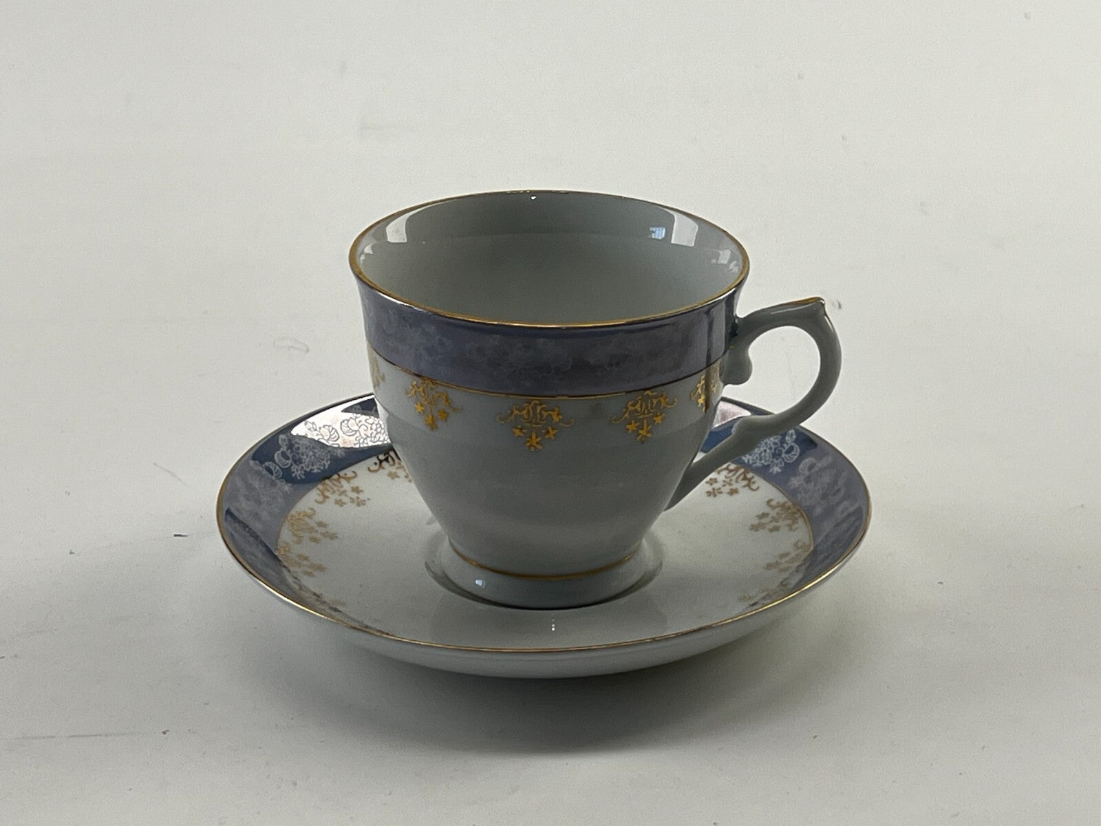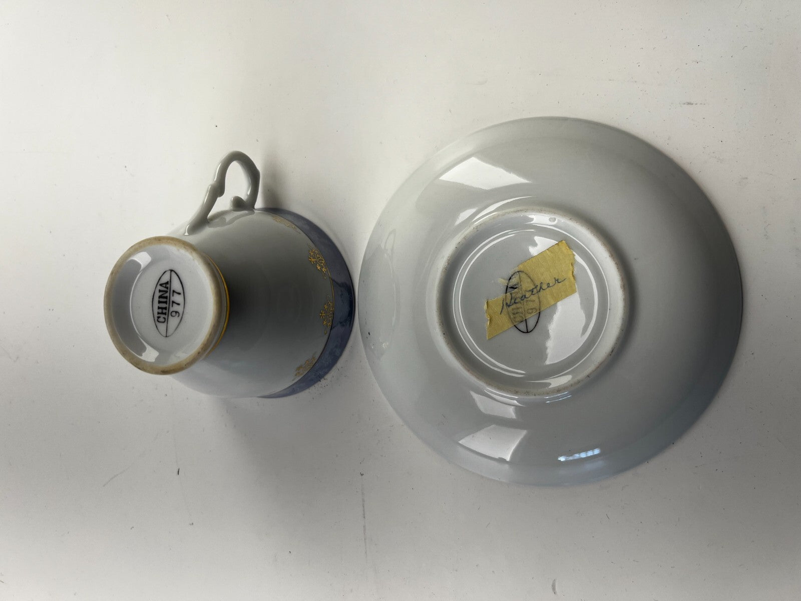 1 Cup w/Matching Saucer China 977 Porcelain Blue/White/Gold