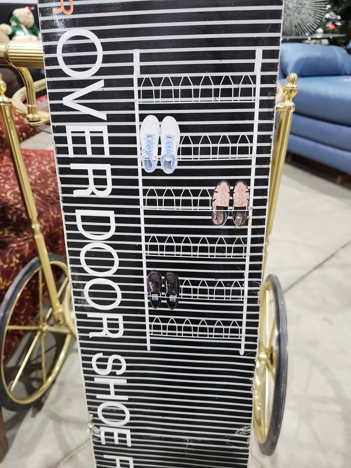 Brand new and still in the box. Measures at 64.5" tall by 22.5" wide and fits 18 pairs of shoes.