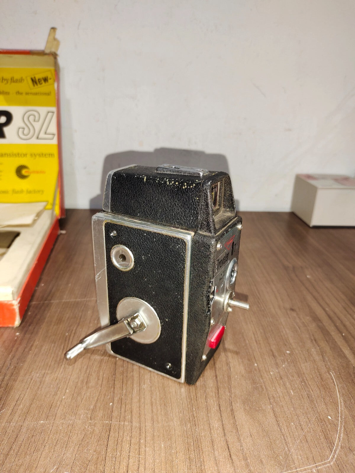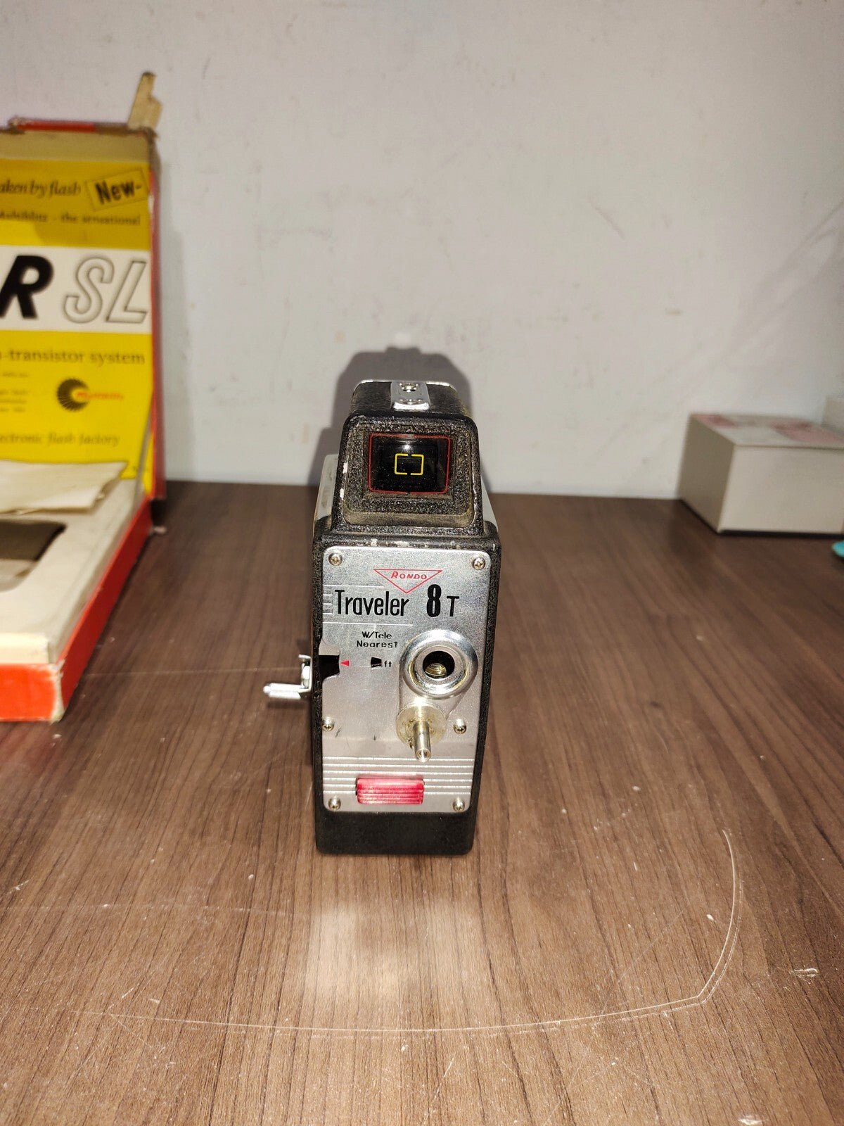 The Rondo Traveler 8T is a vintage 8mm cine camera from the early 1960s, notable for its 3-lens turret design, which allows for quick lens changes without the need to disassemble the camera. Manufactured in Japan, this camera features a metal body and operates with a hand-cranked spring motor , making it a mechanical marvel of its time. Its compact size and unique design have made it a sought-after item among collectors of vintage film equipment.