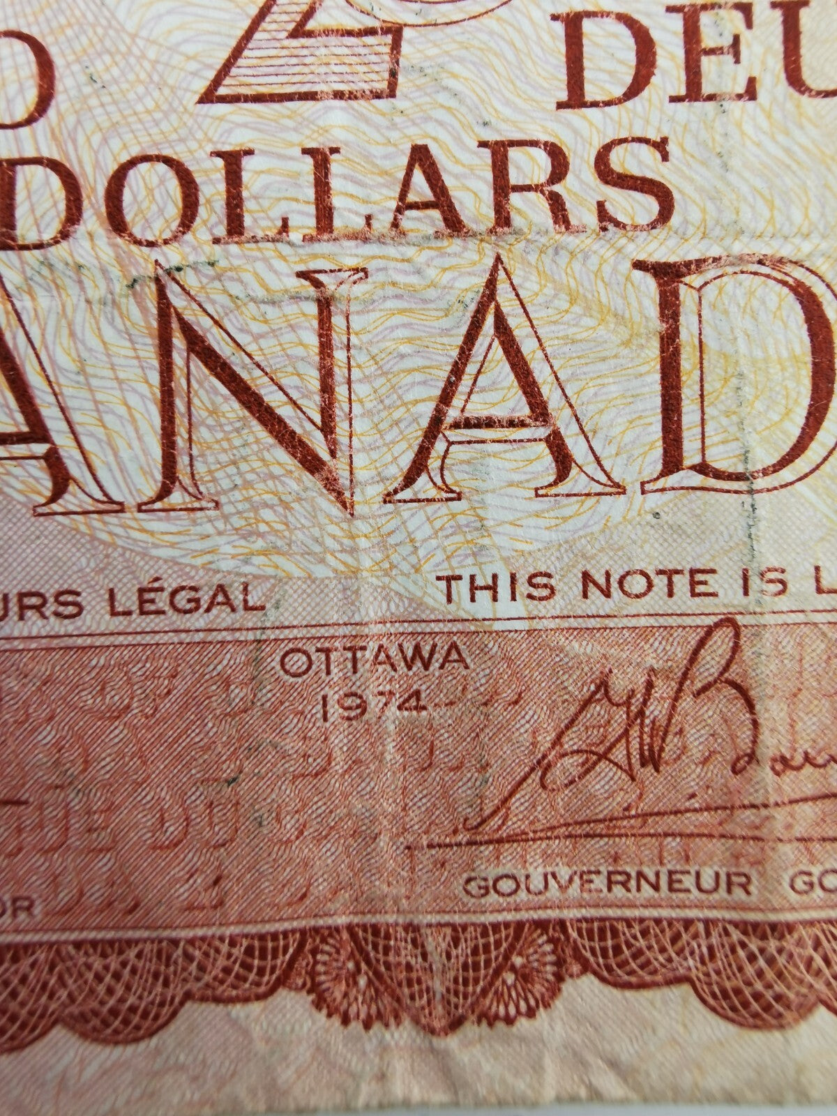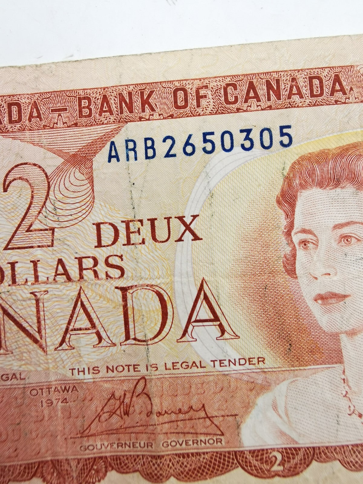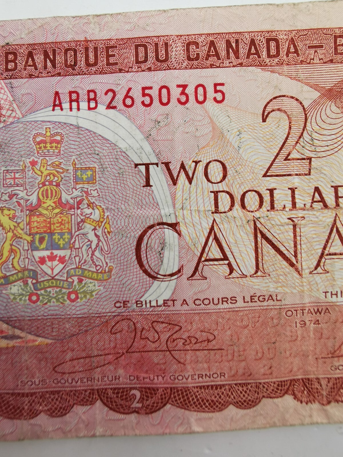 1974 CANADIAN TWO 2 dollars BANKNOTE