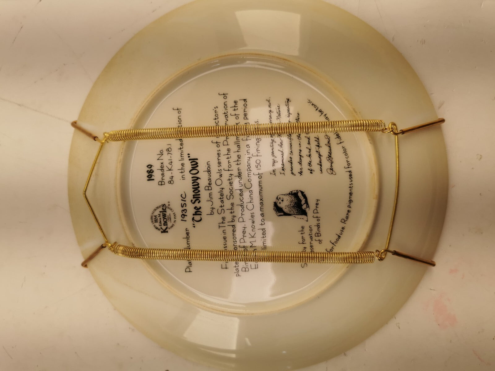 1989 The Snowy Owl Collector Plate W/ Certificate