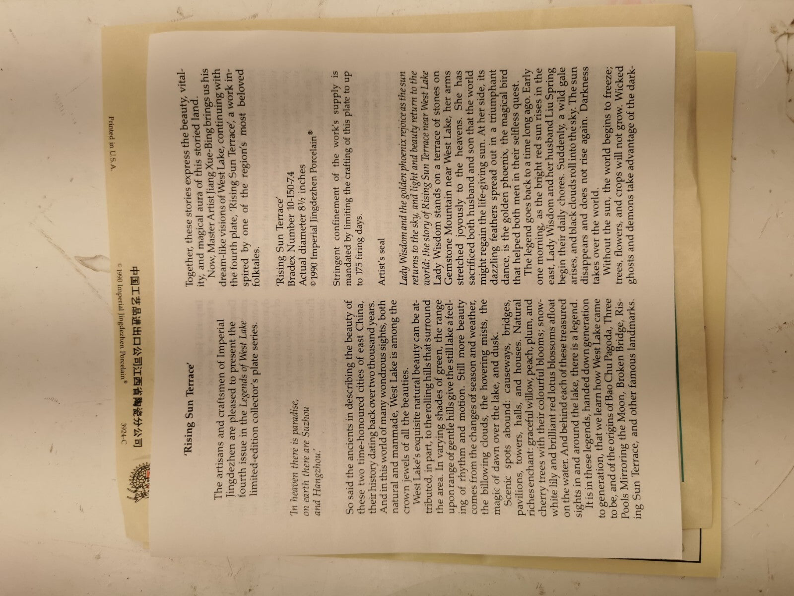 1990 VTG Chinese Imperial Jingdezhen Porcelain Plate "Lady Silkworm"