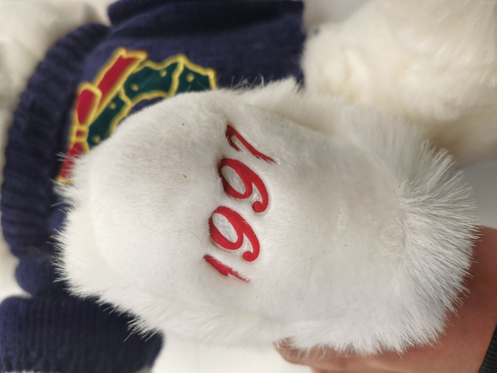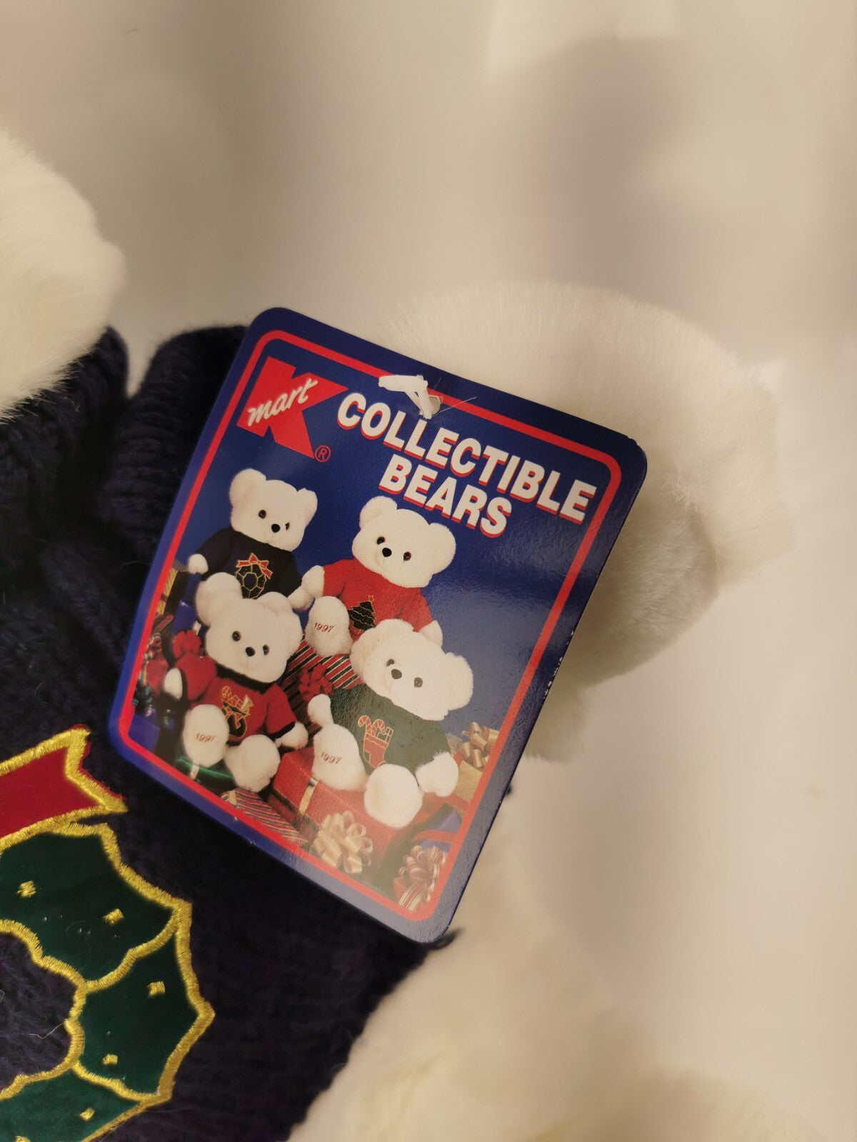 This vintage 1997 Main Joy Limited white teddy bear is the perfect addition to your holiday decor. Measuring 19 inches in size, this medium-sized plush toy is soft and cuddly, making it a great gift for children aged 4 and up. The bear is dressed in a festive holiday wreath and is perfect for decorating your home during the holiday season. Made in China, this Christmas bear is a great find for collectors and teddy bear enthusiasts alike.