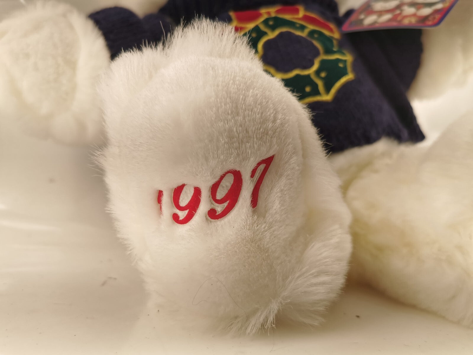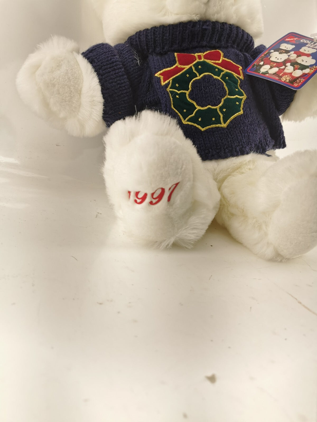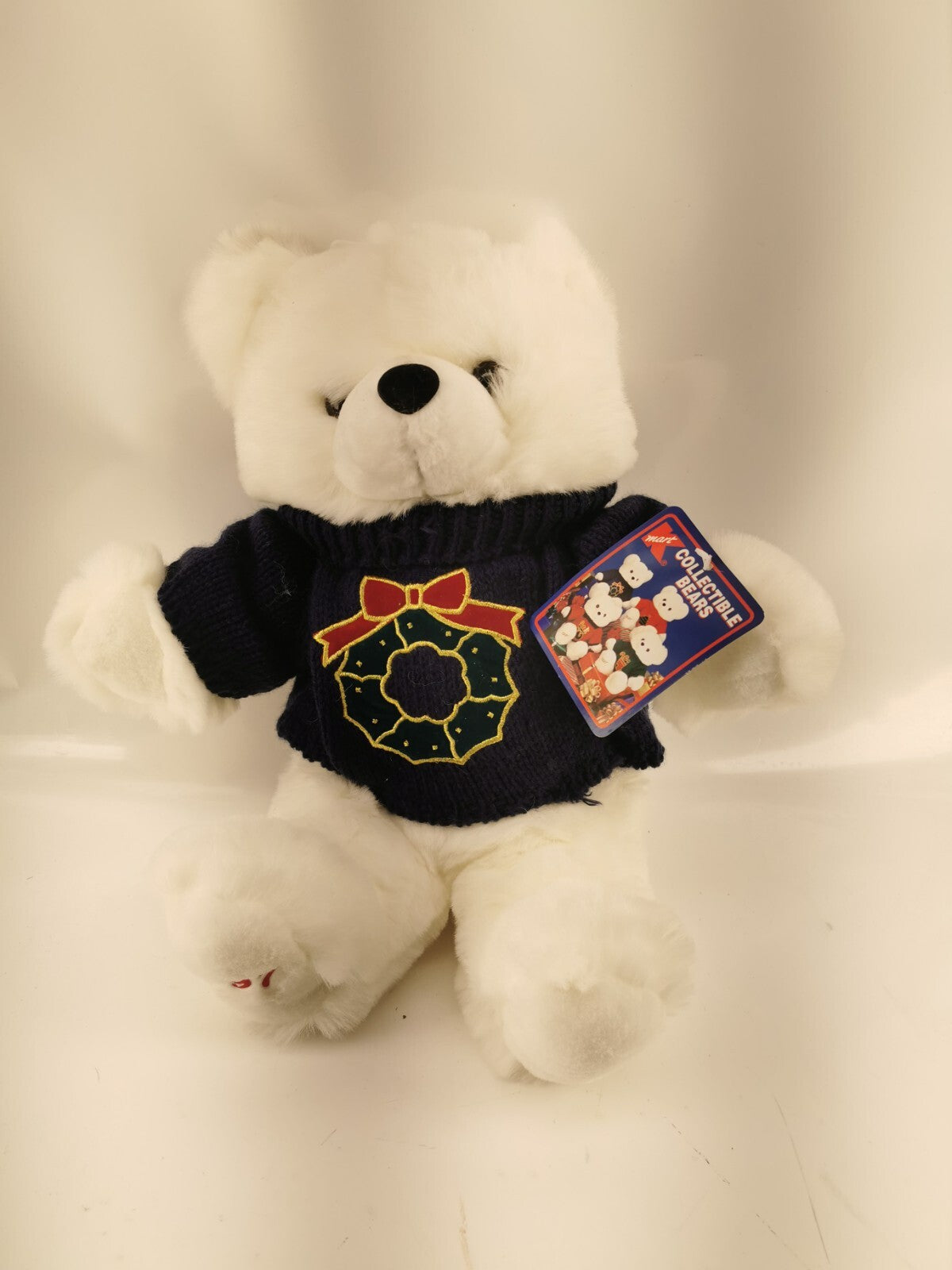 1997 Main Joy White Teddy Bear Holiday Wreath 19" Plush Soft Toy Stuffed Animal