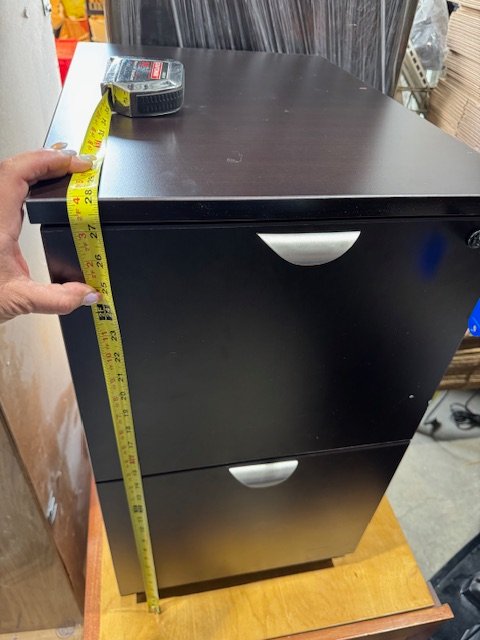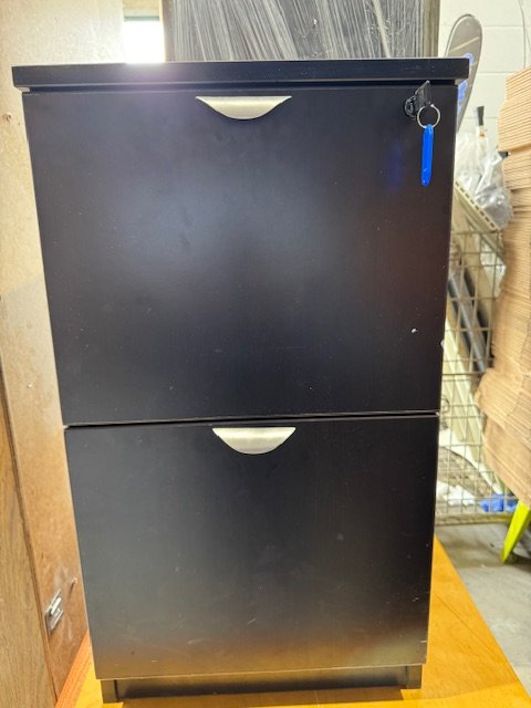 Two drawers filling cabinet , perfect for storing important documents, key included.
