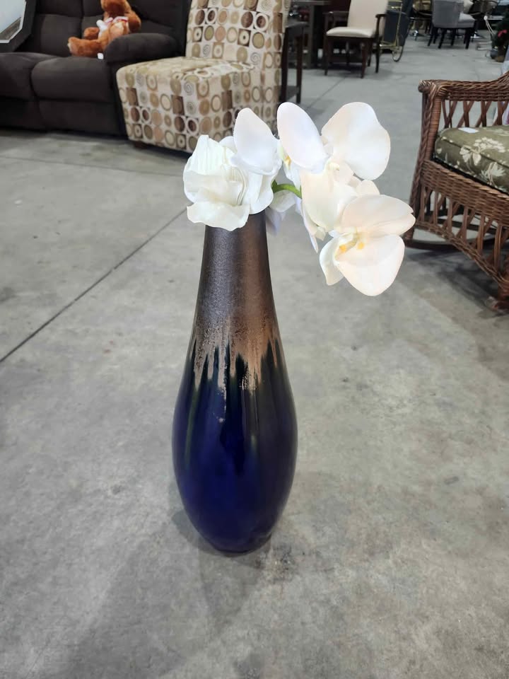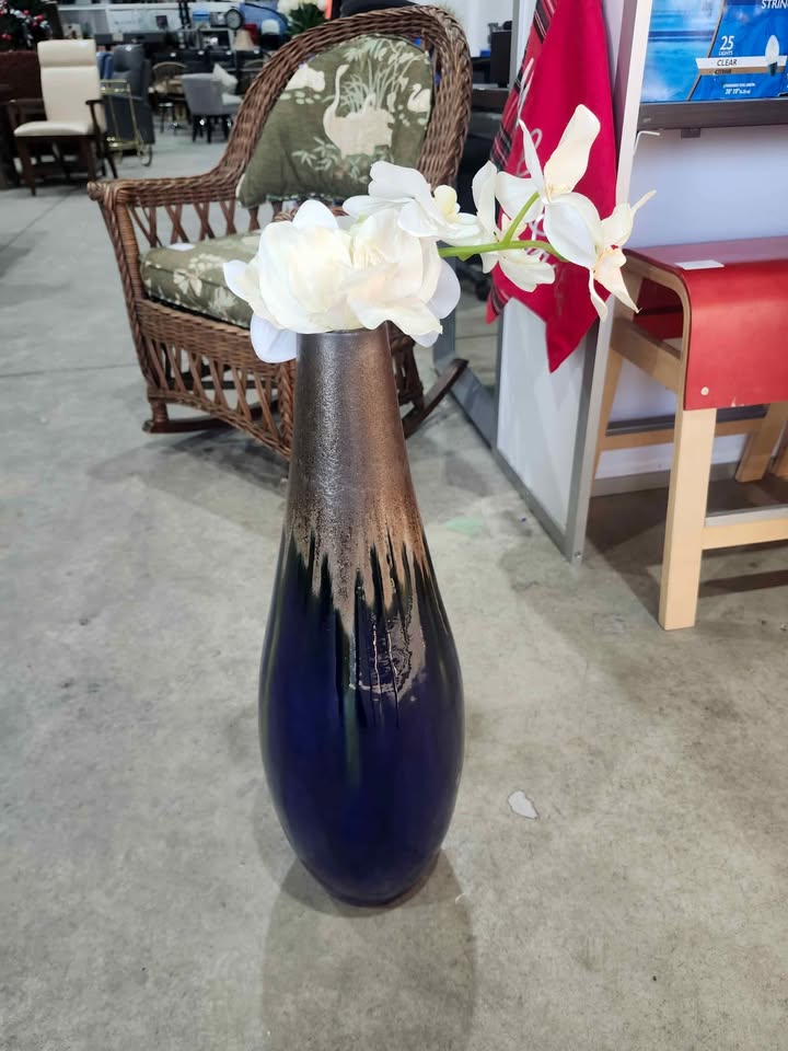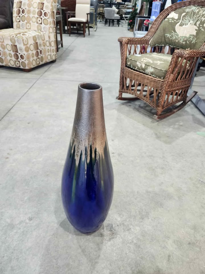 Like new condition, made of glass with a melted wax effect on top. Measures 2ft tall.