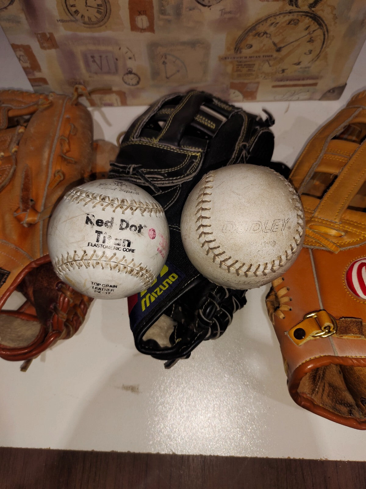 3 Rare Base-Ball Gloves and 2 Base-Ball Balls