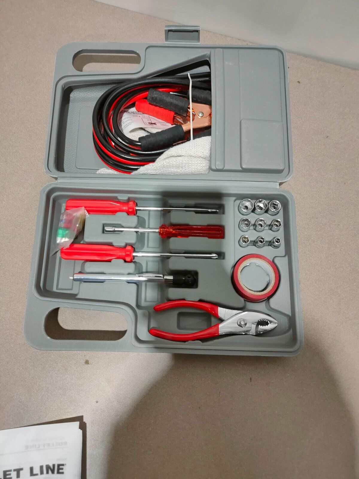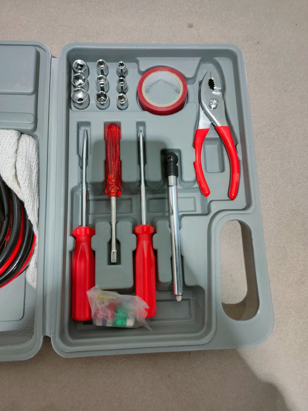Be prepared for any emergency on the road with this 30-piece Emergency Roadside Automobile Assistance kit. The kit includes a variety of tools and supplies to help you handle any situation. From a spare tire to jumper cables, this kit has everything you need to stay safe and comfortable while on the go. With a sleek and compact design, this kit is perfect for any vehicle and is easy to store in your trunk or glove box. Whether you're a AAA member or just want to be prepared for the unexpected, this kit is a must-have for any automobile owner. Don't let a flat tire or other emergency ruin your day - get the help you need with this Emergency Roadside Automobile Assistance kit.