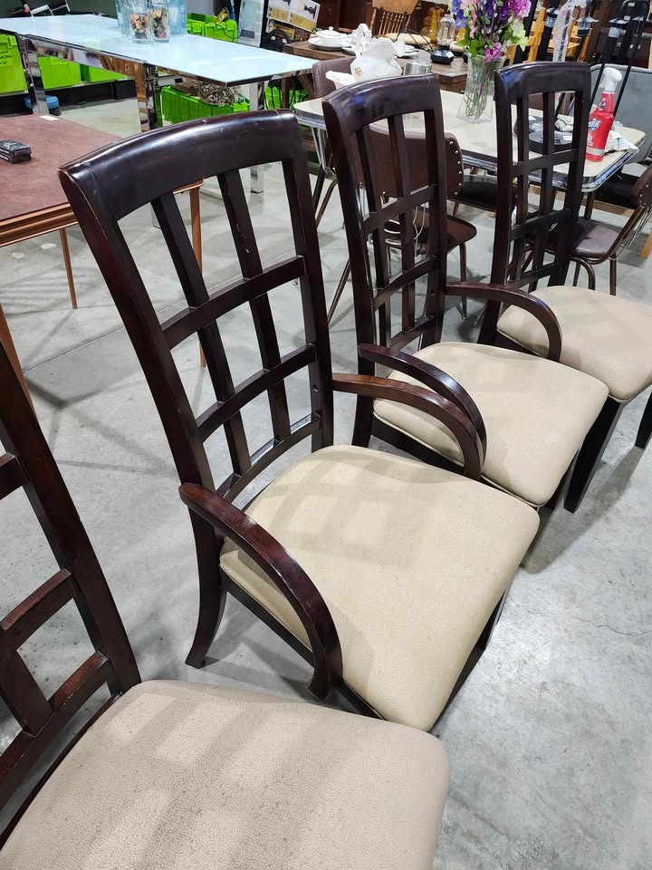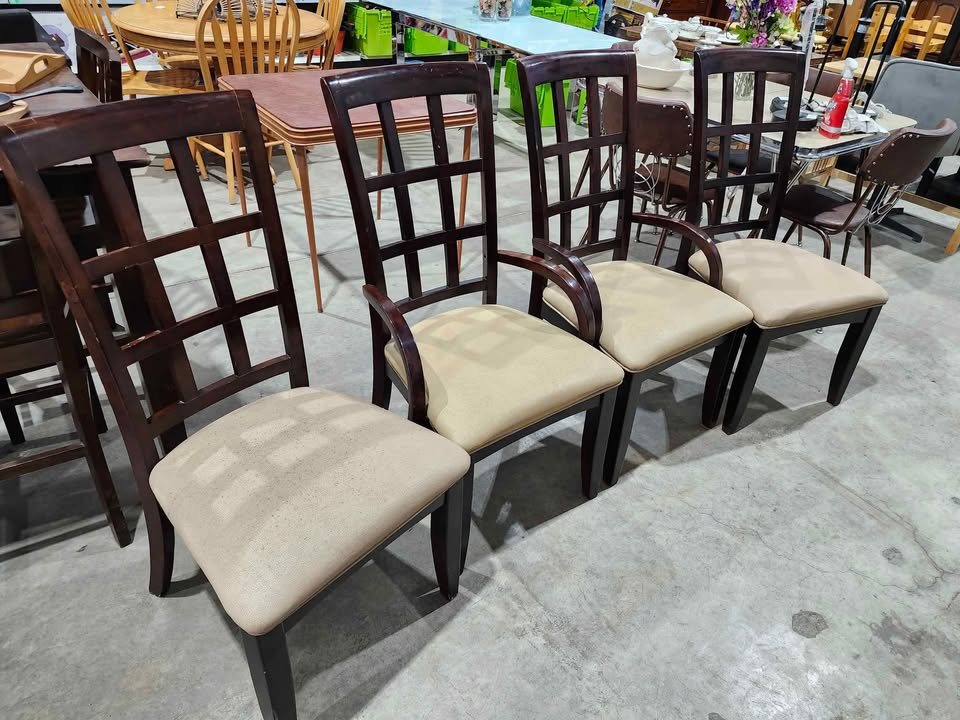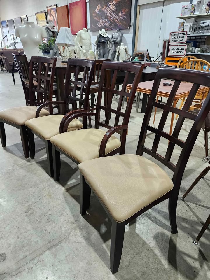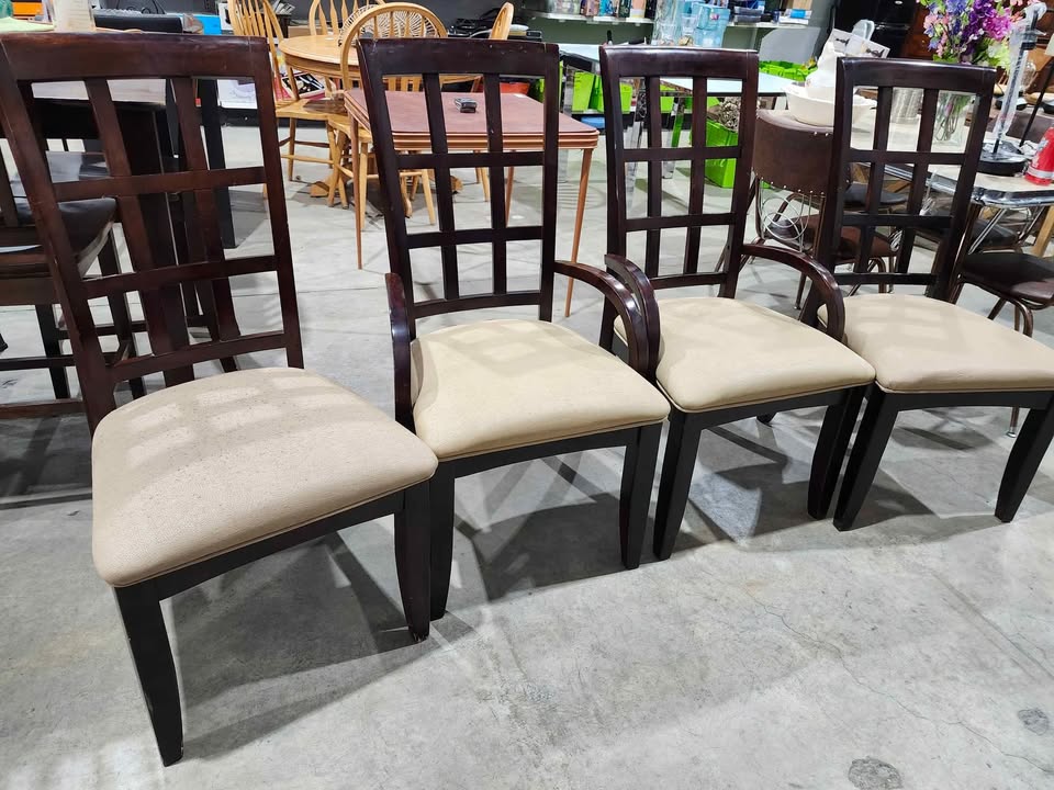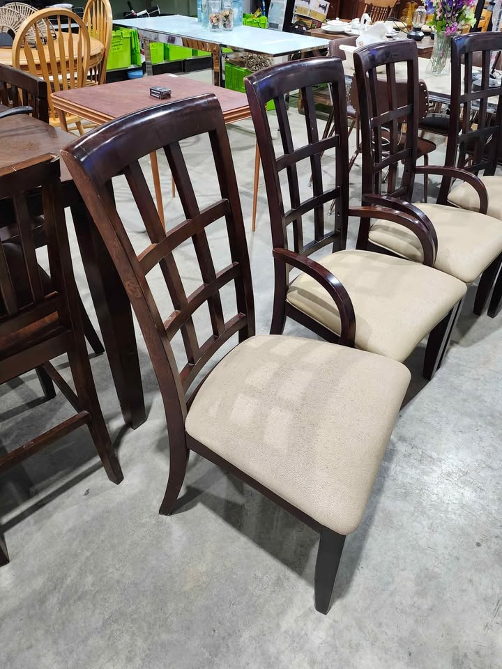 80 for all! Overall in great condition, a couple of the seats are little worn but nothing major. Made of solid wood with a crossed back design. The cushioned seats are a faux leather vinyl type of material. . . . . . . . . . We now have a physical store! Rebound Centre, 6215 3 St SE - Unit C11 (Phillips Park, right next to CHINOOK). Open 7 days a week 10-5. All prices are subject to GST. We accept credit/debit (no cash) on-site or you can purchase from our website at Reboundcentre.com for reserve/pick up. All sales are final. Unfortunately we cannot reserve items without purchase.