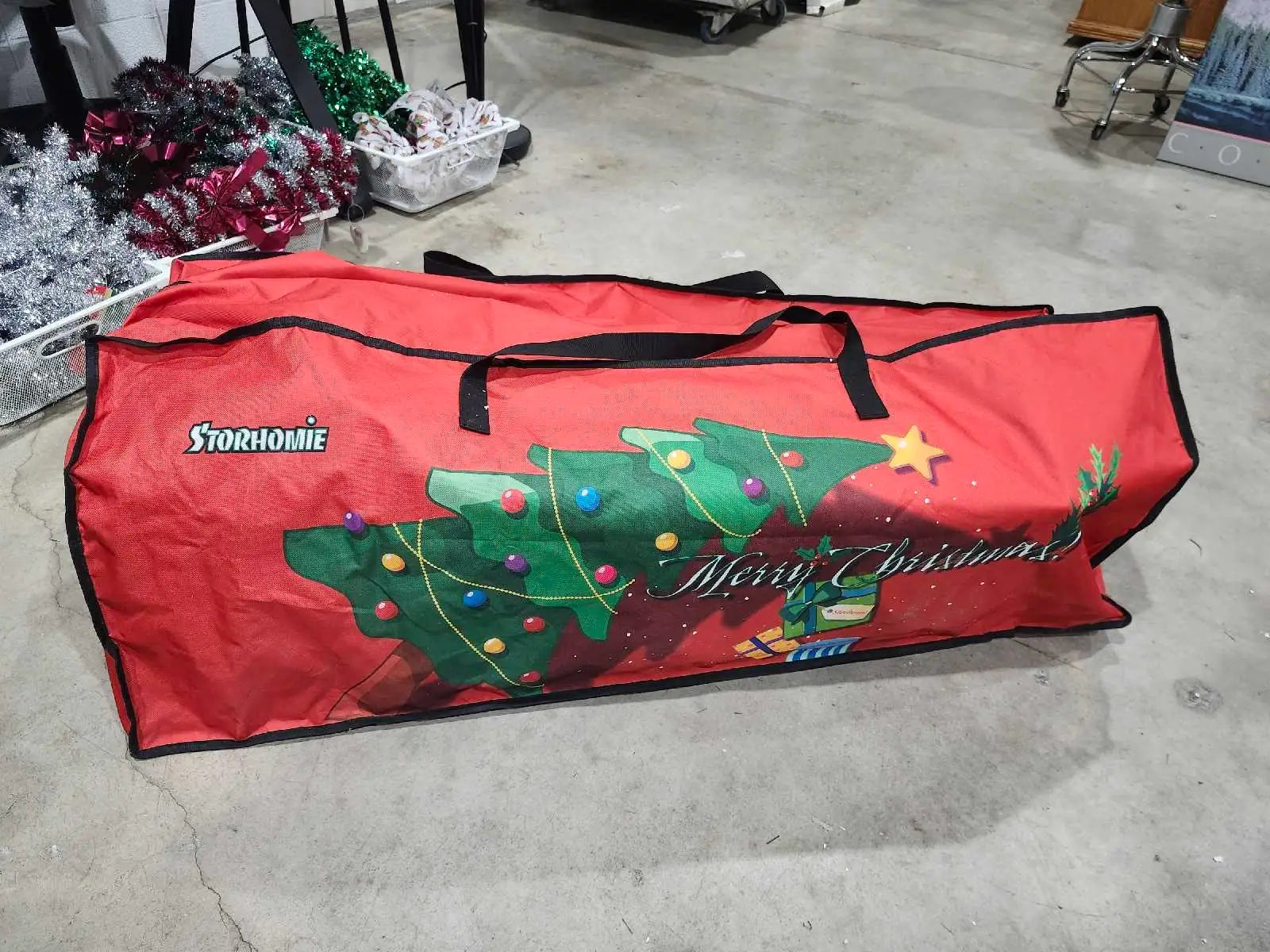 Add a touch of festive charm to your home with this Merry Christmas flocked pencil tree, standing 6.5 feet tall and illuminated with vibrant RGB lights. This tree comes complete with its original box and a convenient storage bag, making setup and takedown a breeze. This tree has been used for one season, and is in excellent condition. * Height: 6.5 feet * Type: Flocked pencil tree * Lights: RGB * Includes: Original box and storage bag