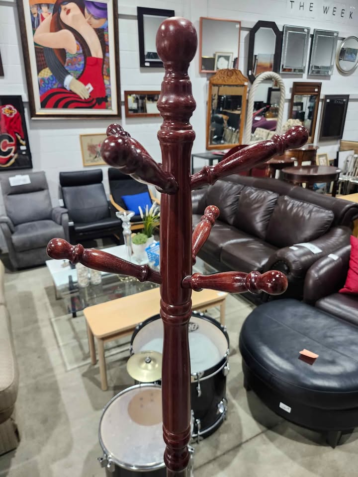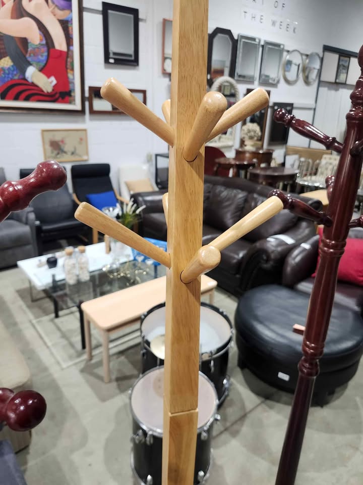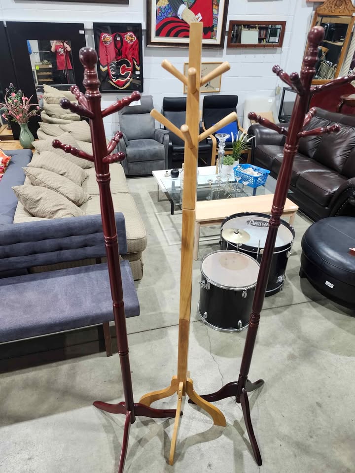 Wooden coat racks. Includes multiple hooks for hanging garments. The stand has a tripod base for stability. Could be a perfect addition for your entryway. 3 available $20 each. Visit Rebound Centre Thrift Store 6215 3rd St SE, Unit C11 Open daily 10 AM – 5 PM Local pickup/Delivery available Prices subject to GST