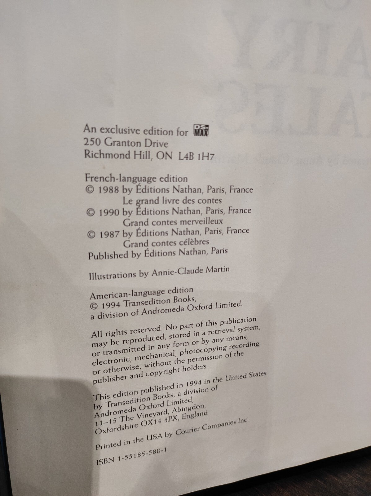 A Treasury Of Fairy Tales Hardcover Book, Illustrated Annie-Claude Martin