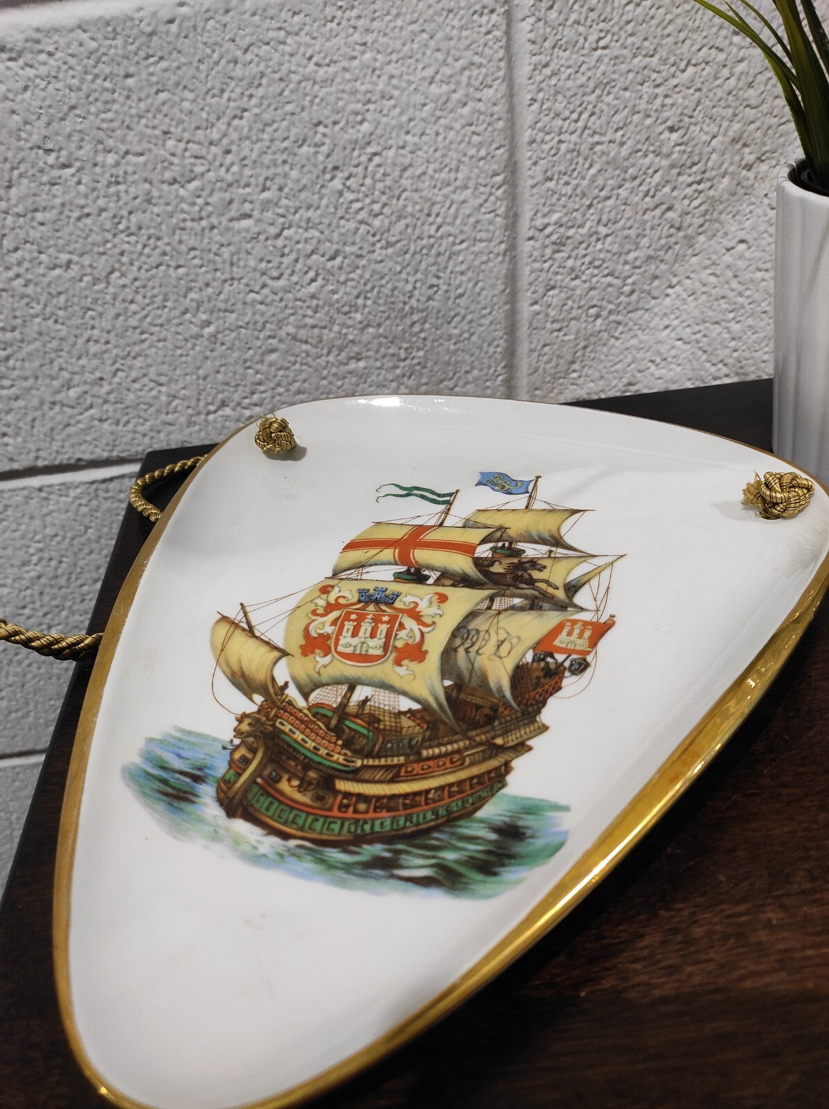 This set of two Alka Kunst porcelain triangular wall-hanging plates from Bavaria combines timeless elegance with exquisite craftsmanship. Featuring delicate designs and high-quality porcelain, these plates are perfect for collectors or as a sophisticated addition to your home décor.