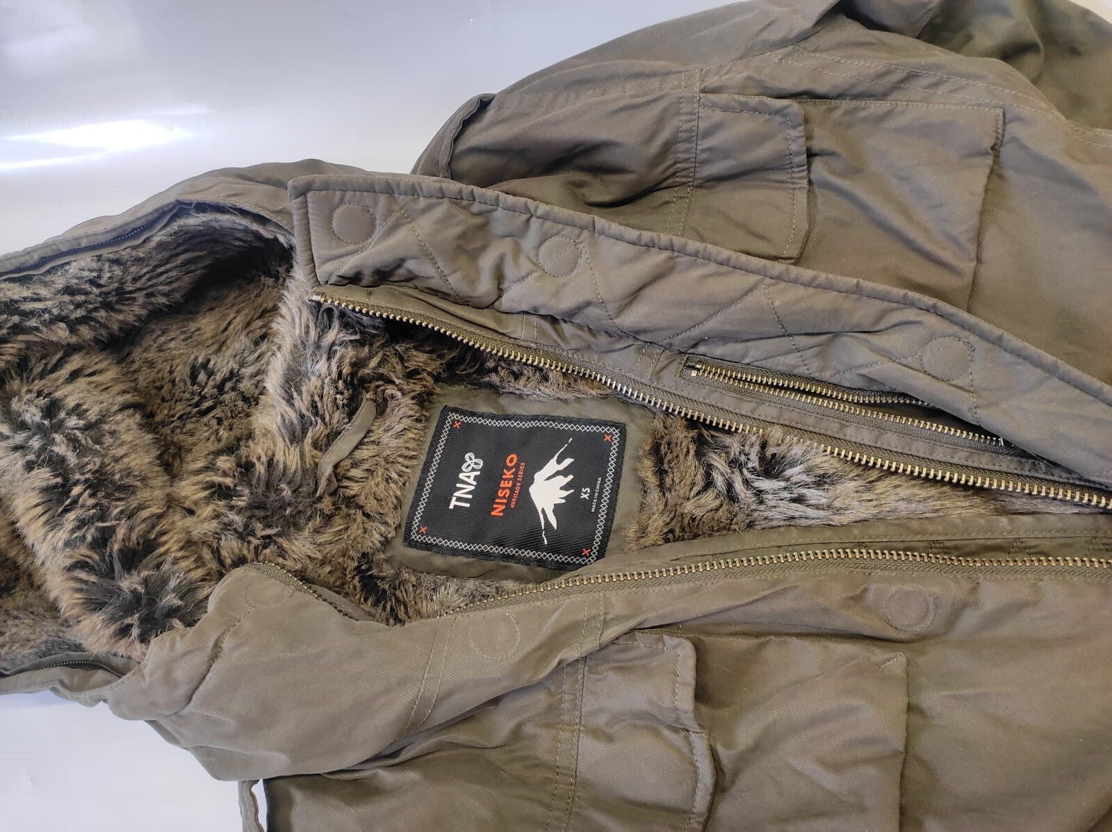 Aritzia TNA Niseko Heritage Series Parka Jacket Women XS green Faux Fur Lined