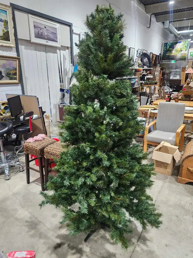 Get ready to deck the halls with this lush, 7-foot artificial Christmas tree, perfect for adding a touch of festive cheer to your home. This tree has been previously enjoyed and is in good condition, ready to be adorned with your favourite ornaments and lights.