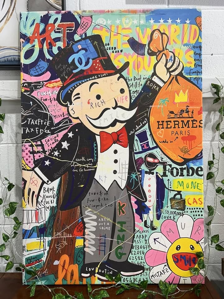 NEW ARRIVAL! IN STORE NOW! Banksy Street Grafitti - Monopoly - Large Canvas - Measures 31 inches wide and 46 1/2 inches tall.