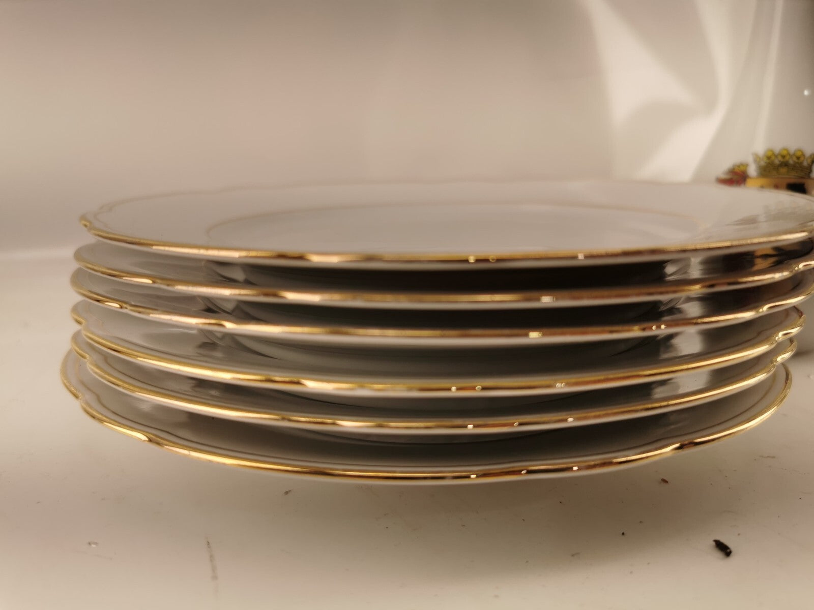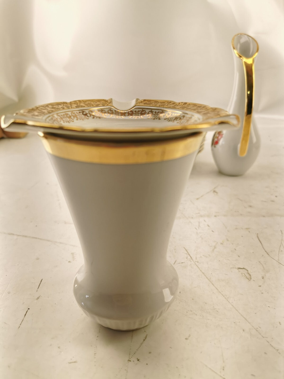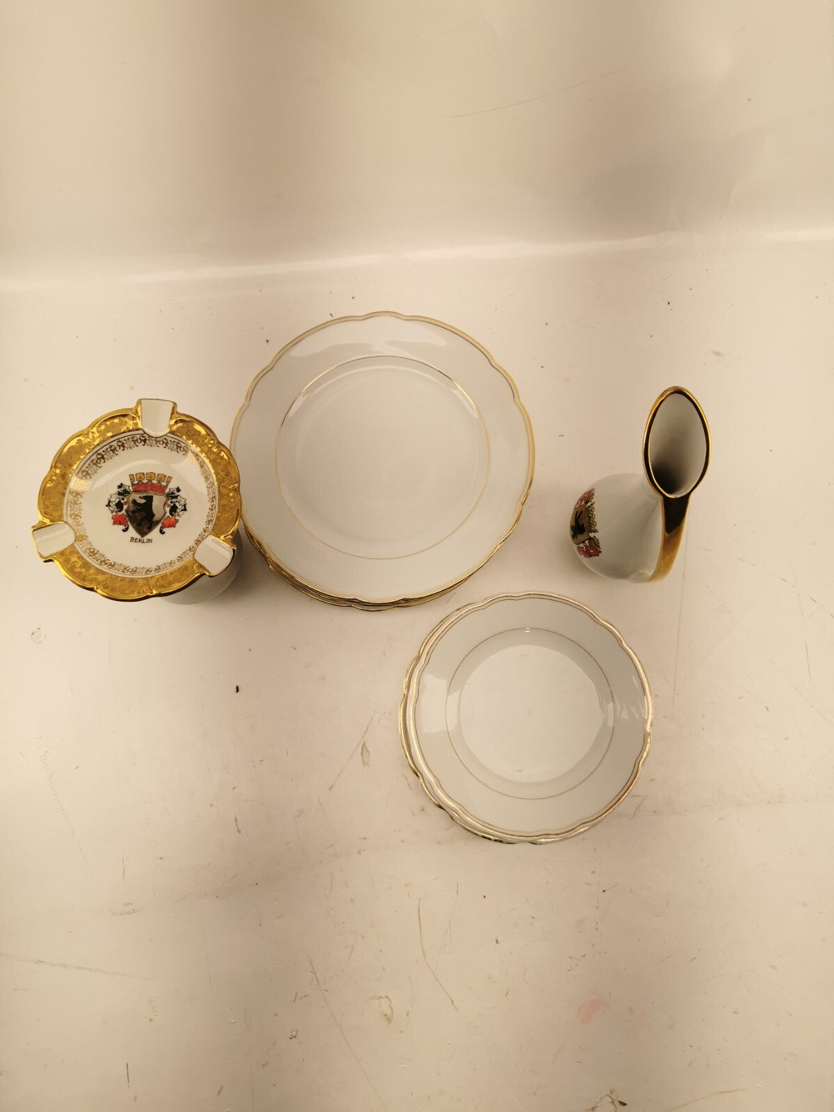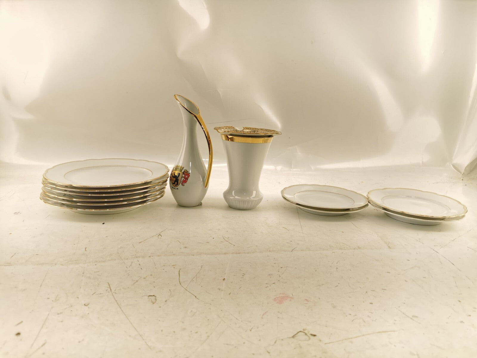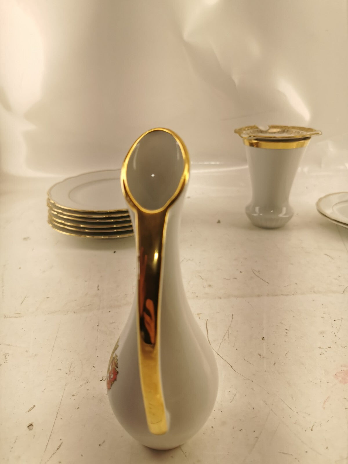 This beautiful creamer and plates set from Bavaria, Germany is a must-have for any collector or lover of fine porcelain and ceramic. The colorful design showcases the best of German artistry, making it a perfect addition to any dining table or display case. Crafted with care and attention to detail, this set is sure to impress your guests and elevate your dining experience. Whether you're serving cream or cheese, this set is the perfect choice for any occasion. Add it to your collection today and enjoy the beauty and elegance of Bavaria Germany Plates & Creamer.