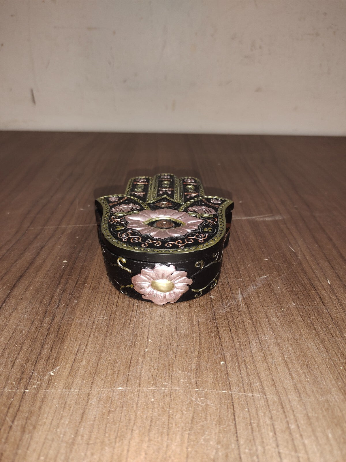 Black and Gold Hamsa or Hand of Fatima Jewelry Trinket Box