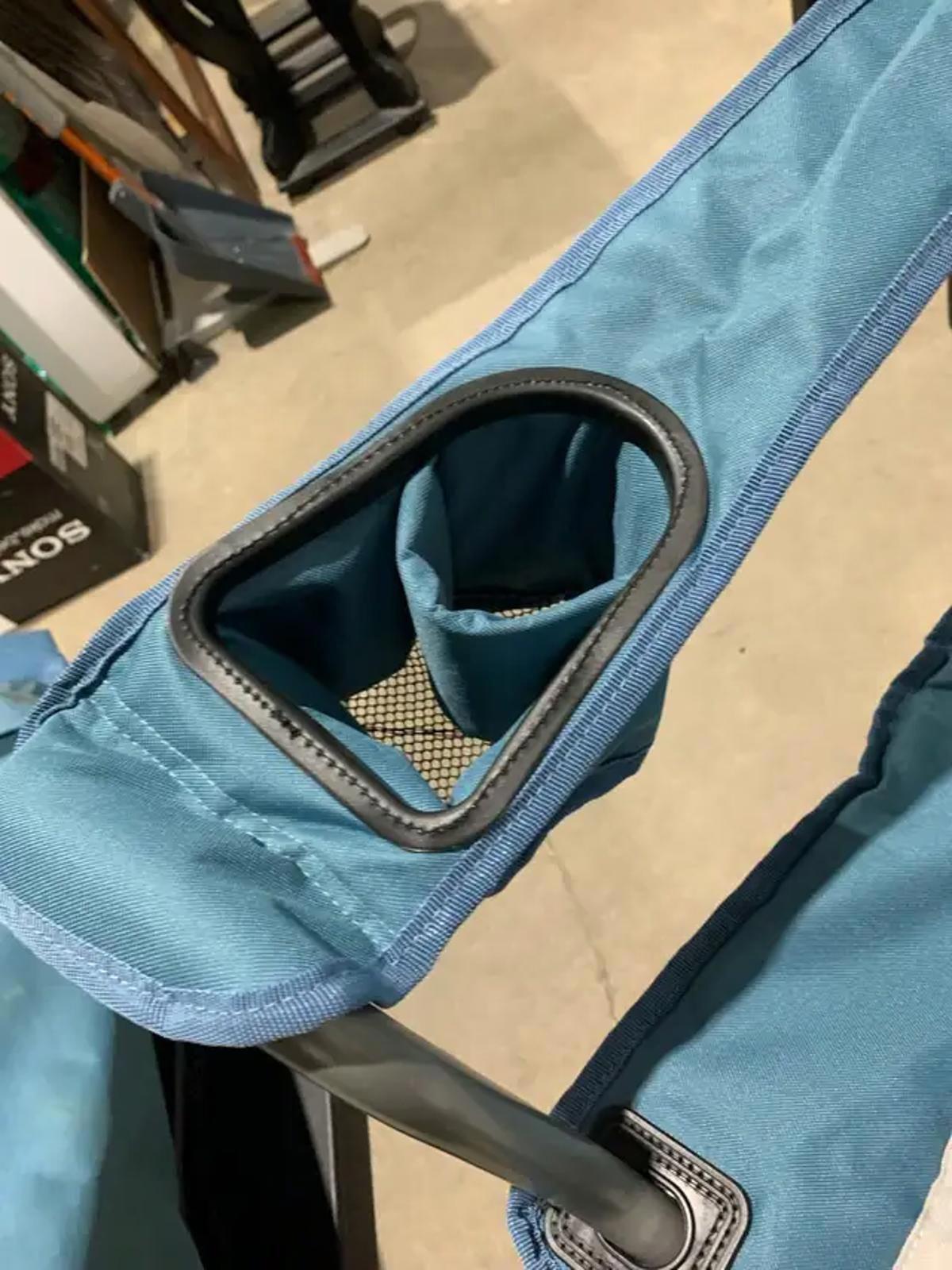 Relax in comfort with this Woods chair, perfect for camping, sporting events, or backyard lounging. This chair is in used, but good condition. It features a durable frame, a comfortable padded seat, and a convenient cup holder. It also includes a carrying bag for easy transport and storage.