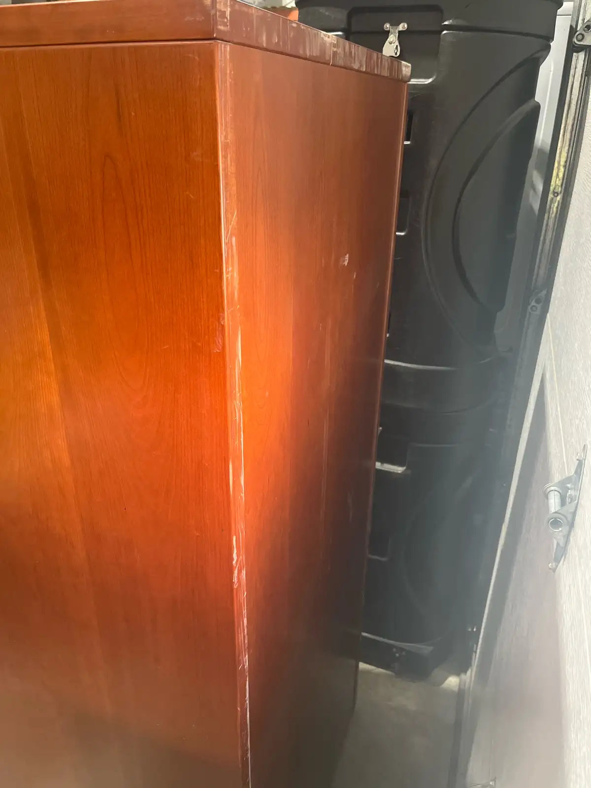 This is a used bookcase with a cabinet at the bottom for closed storage and open shelving up top, perfect for organizing books or displaying decor. While it has served its purpose well, it's time for it to find a new home. The bookcase is in good condition, ready to add character and functionality to your space. Specifications: * Dimensions: 33" wide x 24" deep x 67" high * Material: Wood veneer * Shelves: Adjustable * Doors: Includes lock and key Looking to add a touch of charm and functionality to your home? Look no further! If you are reading this, it is still available!