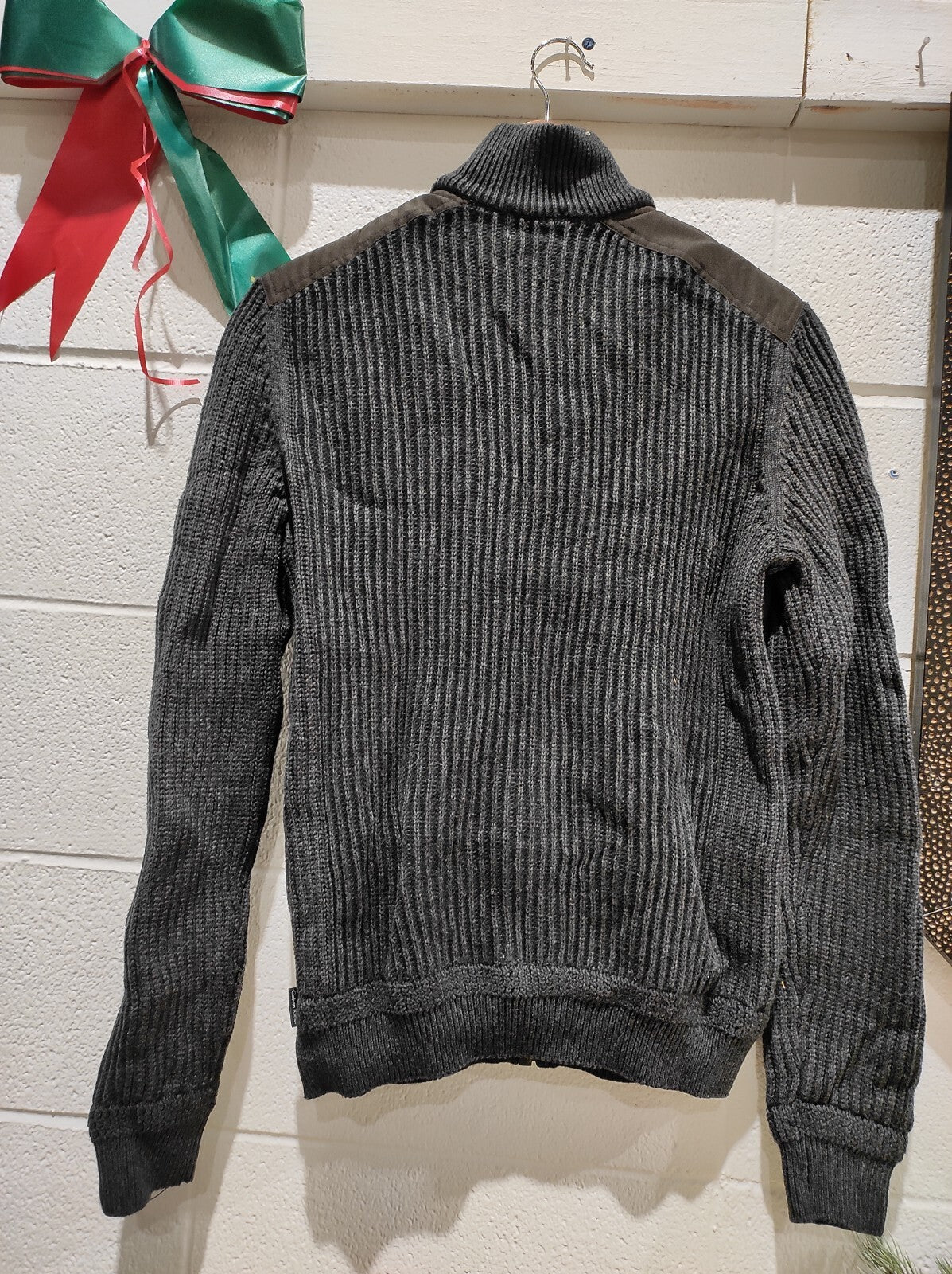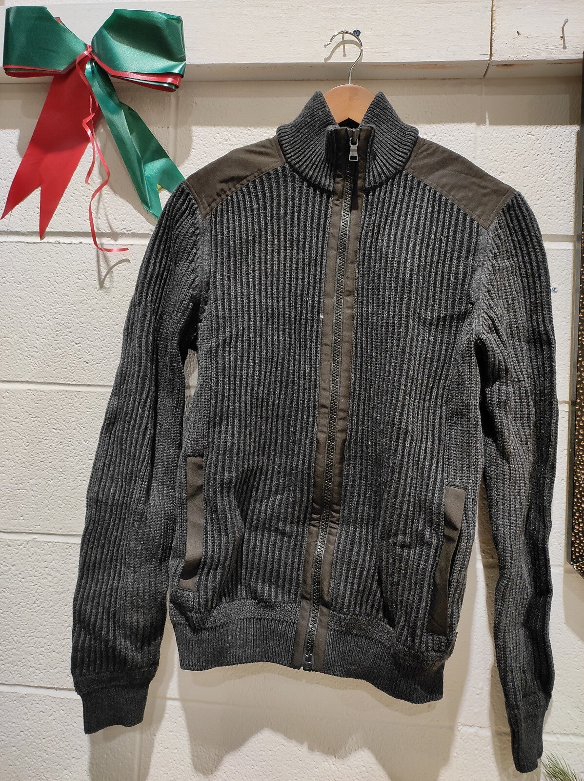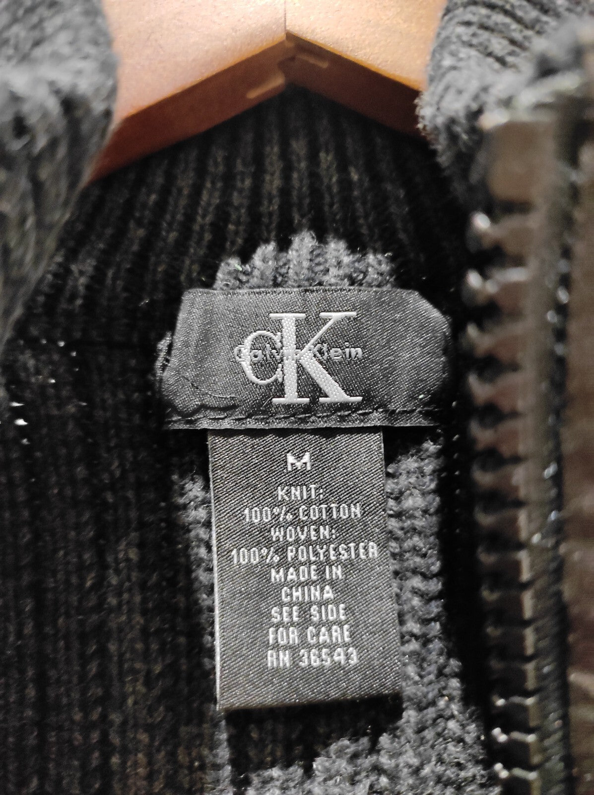 Calvin Klein Men's M Ribbed Woven 100% Cotton Knit Zip Up Navy Sweater