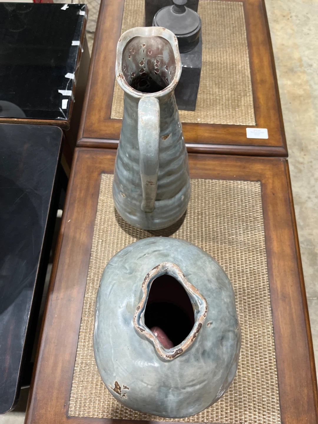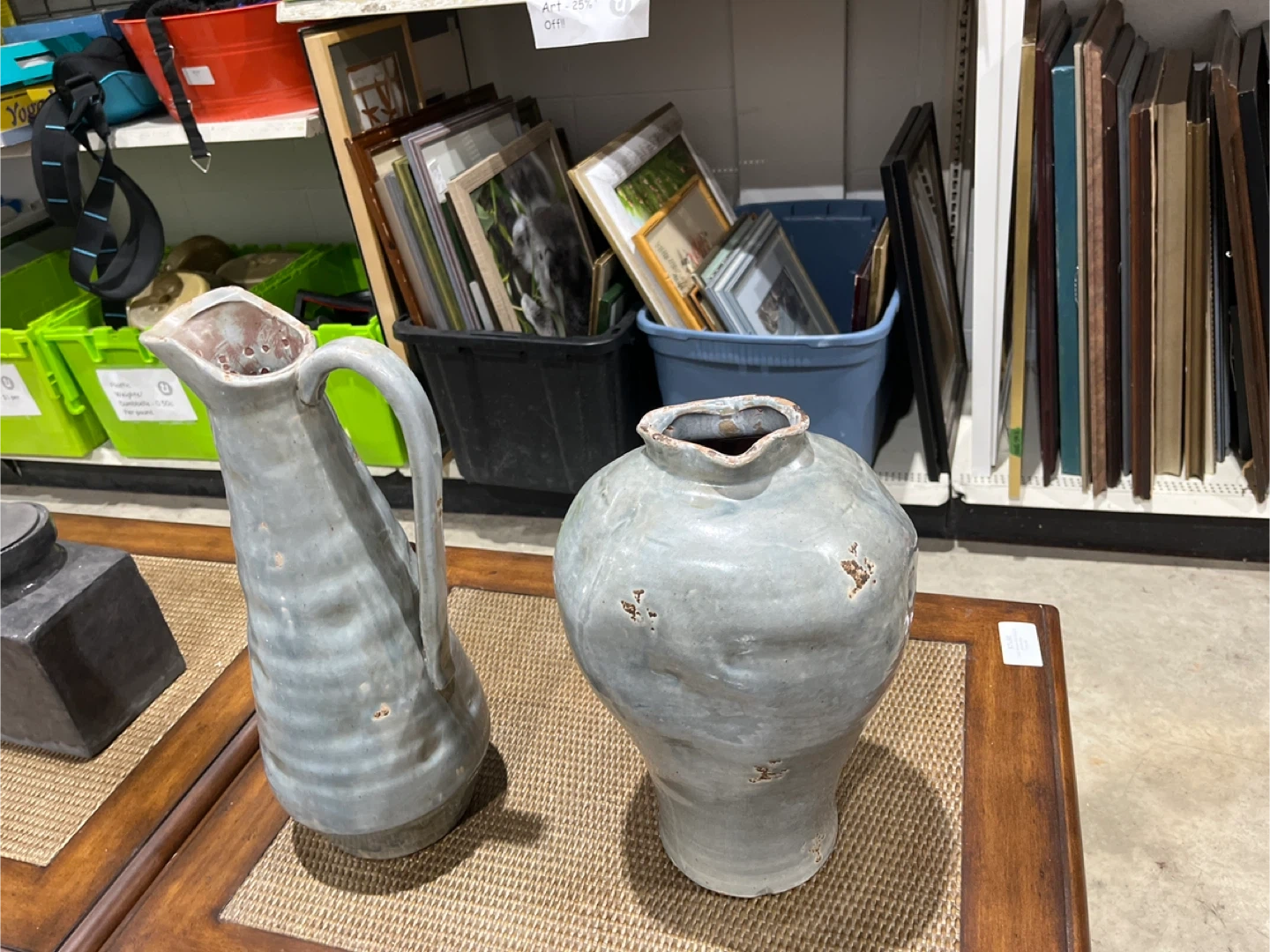 Selling a lovely ceramic vases and pitcher set. They have a unique grey finish that would look great in any home. These pieces are in good condition and ready for a new home Visit Rebound Centre Thrift Store 6215 3rd St SE, Unit C11 Open daily 10 AM – 5 PM Local pickup available
