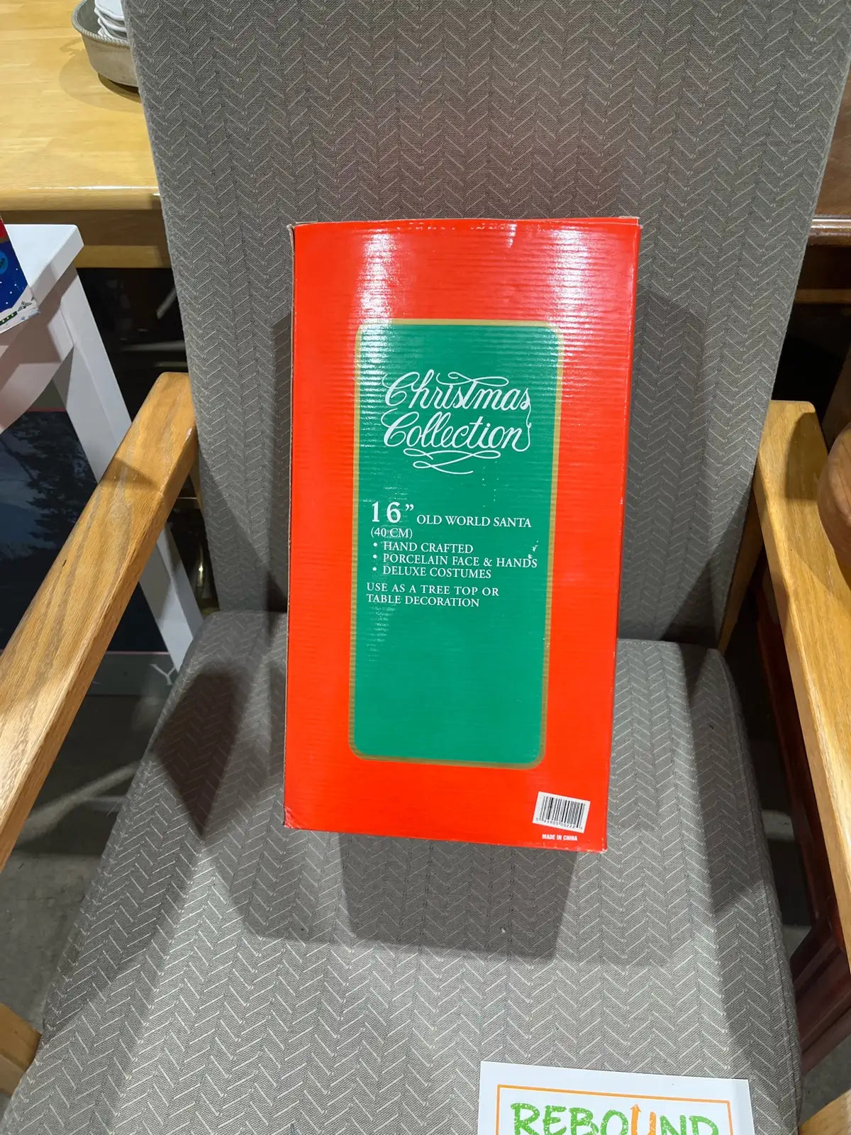 This 16" Christmas Collection Old World Santa Claus figurine, complete with its original packaging, brings a touch of vintage charm to your holiday decor. The Santa features hand-crafted porcelain face and hands and is dressed in deluxe costumes, perfect for use as a festive toy or table decoration. This item is in good condition, a vintage find that will make your family smile every holiday season. * 16" Old World Santa * Hand Crafted * Porcelain Face & Hands * Deluxe Costumes * Use as Festive Toy or Table Decoration The price is $40+5%GST 6215 3rd St SE, Unit C11 - Rebound Centre Daily 10AM - 5PM