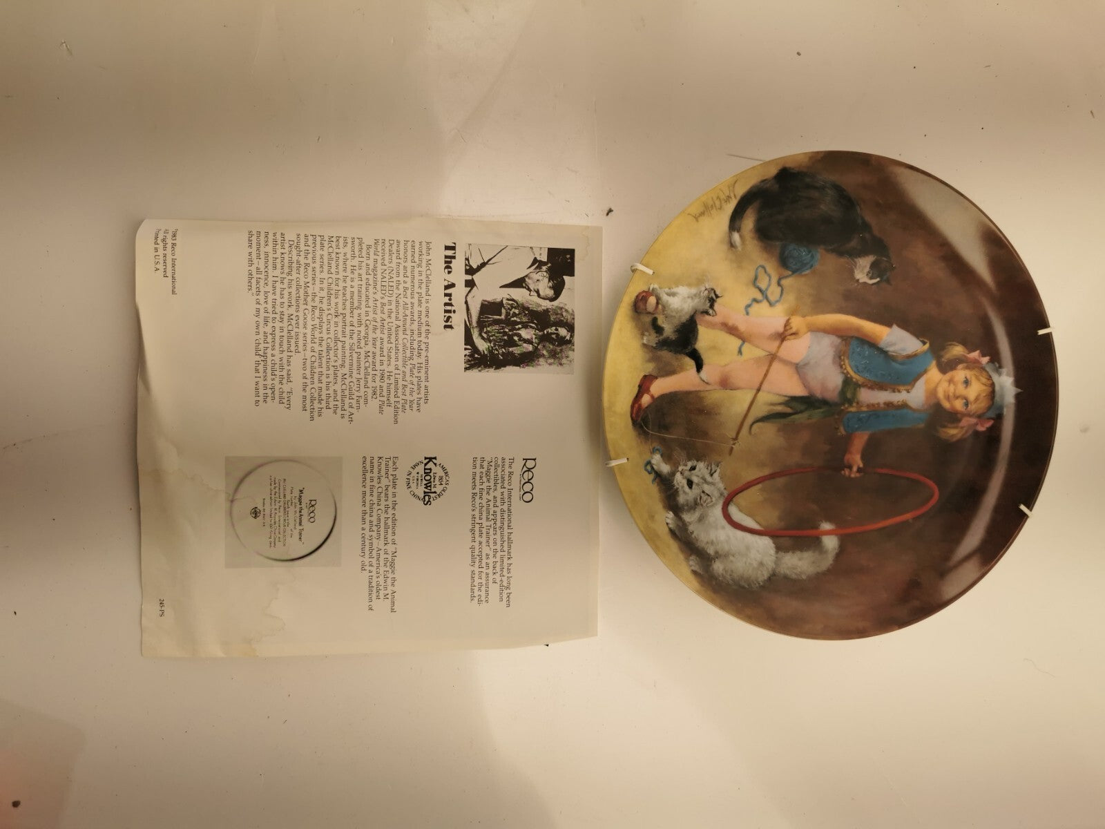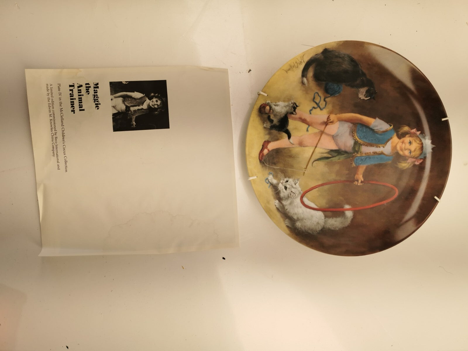 This collector plate from the McClelland Children's Circus Collection features Maggie, the animal trainer. The intricate design and attention to detail make this plate a must-have for any collector of decorative collectibles. Crafted with the highest quality materials, this collector plate is sure to be a standout addition to your collection. Whether you are a fan of collector plates or simply looking for a unique piece of decor, this plate is sure to impress. Add it to your collection today!