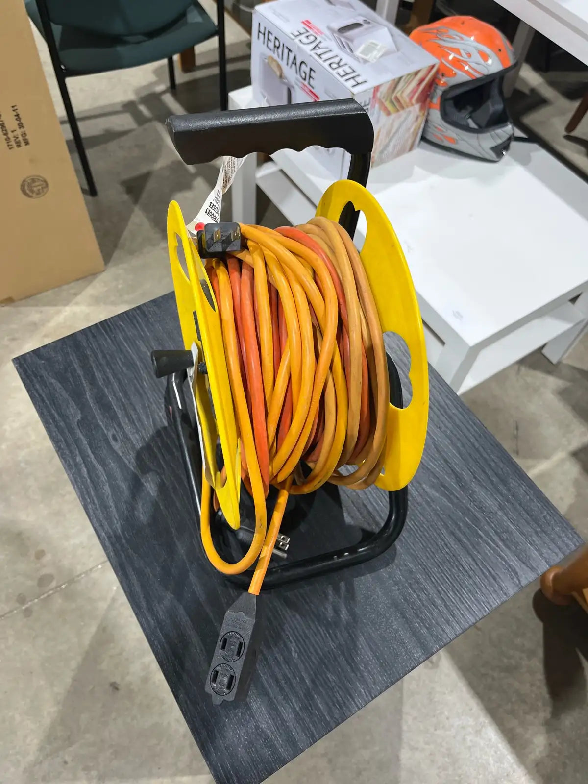 I'm selling a used cord reel featuring a quad tap and a 125V/15A power rating, supporting up to 1800 watts. This handy tool is perfect for managing extension cords in your workshop, garage, or on job sites. Its reel design keeps cords tangle-free and easy to deploy, making it a must-have for anyone who values organization and efficiency. Although it shows signs of use, it remains fully functional and ready to tackle your power distribution needs. Additional Specifications: * Type: Quad Tap Cord Reel * Voltage: 125V * Amperage: 15A * Max Power: 1800 Watts The price is $20+5%GST 6215 3rd St SE, Unit C11 - Rebound Centre Daily 10AM - 5PM Based on similar items listed on Kijiji, I'm pricing this cord reel at $25. Don't let this cord reel slip through your fingers! If the ad is still up, yes, it's available!
