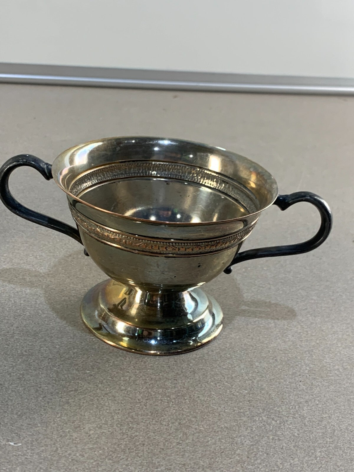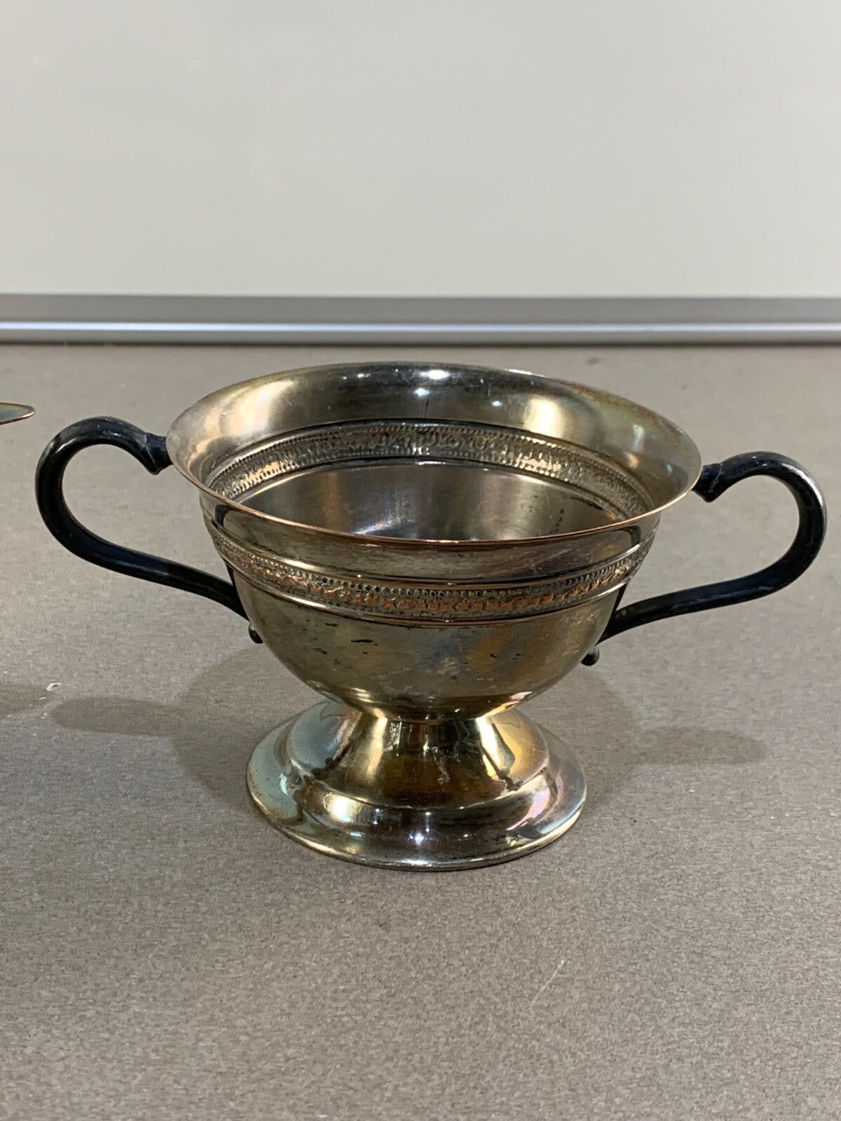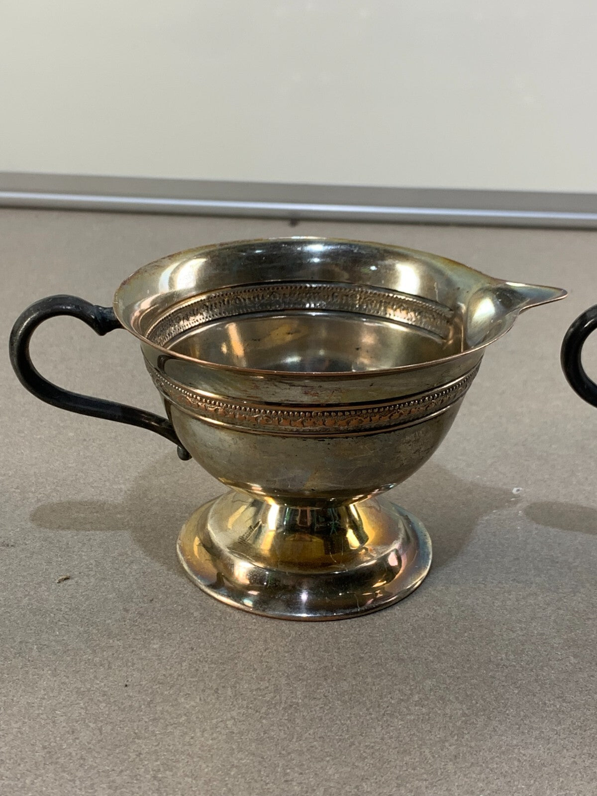 Creamer & Sugar bowl lined with copper EPO with M. Mounts rare antique
