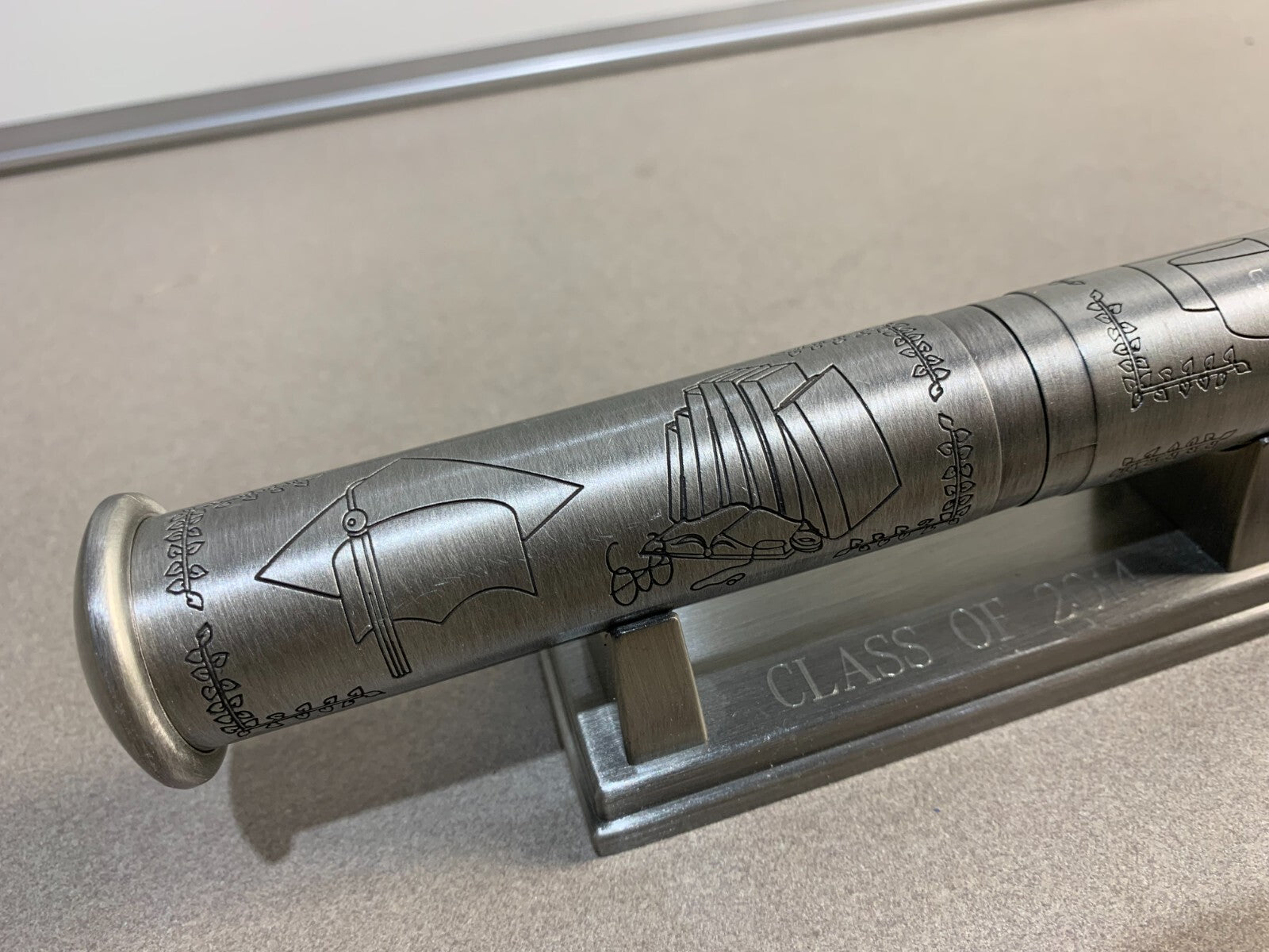 Elevate your graduation achievements with a customized engraved certificate holder. This uniquely designed keepsake is crafted to hold your cherished graduation certificates, providing a durable and elegant home for your accomplishments. Its personalized touch makes it an exceptional piece that resonates with your individual milestones and memories. The certificate holder is meticulously engraved, ensuring that every detail of your graduation information is captured with precision. Its sleek and modern design is perfect for display, fitting seamlessly into any decor. Preserve and showcase your educational triumphs with this exclusive and tasteful graduation memento.