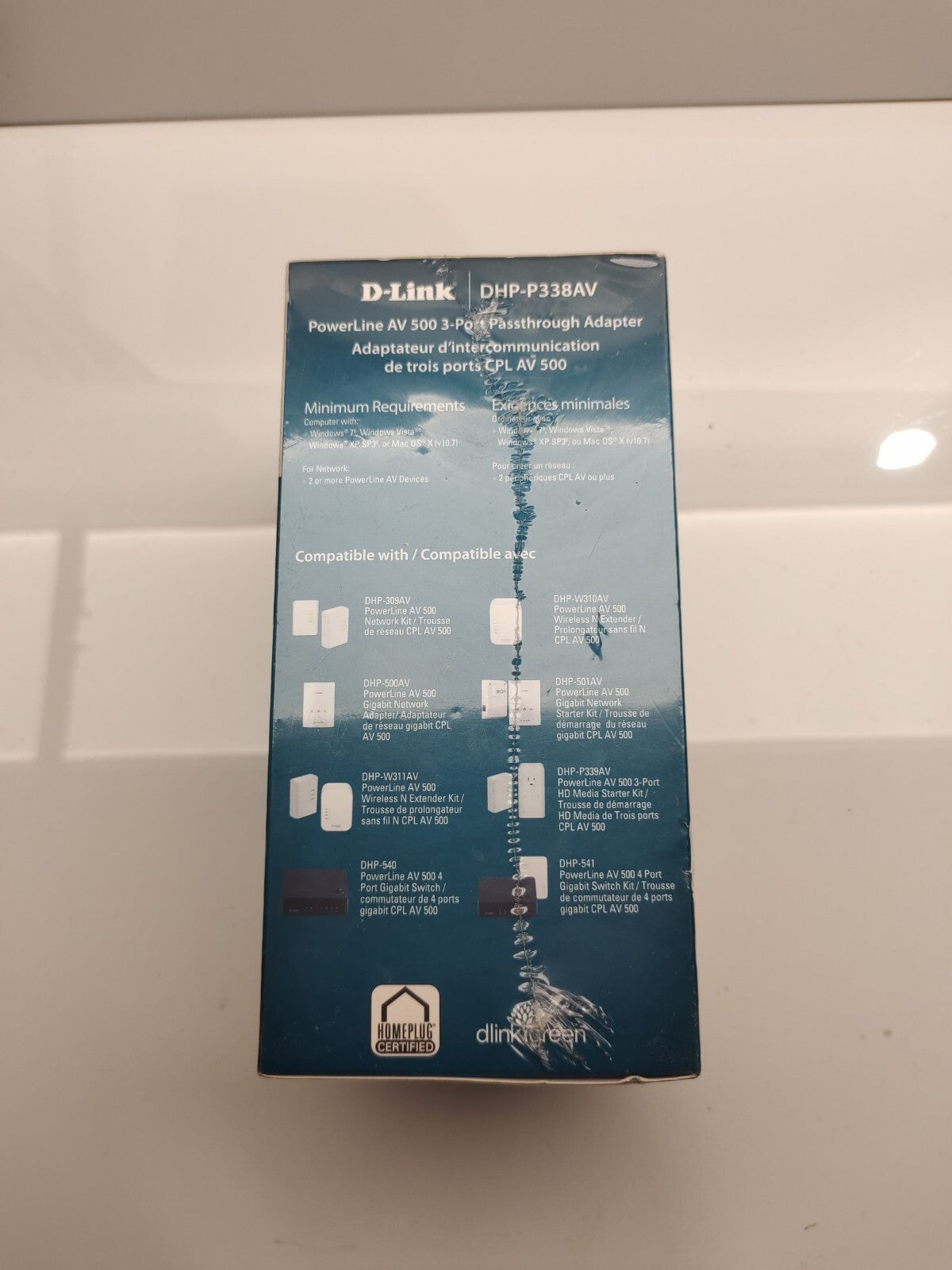 Enhance your home network effortlessly with the D-Link DHP-W311AV PowerLine CPL AV500 Network Kit. This brand-new, sealed kit includes two adapters designed to provide a stable and high-speed network connection by leveraging your home's existing electrical wiring. Perfect for extending your network to hard-to-reach areas without the need for additional cabling.