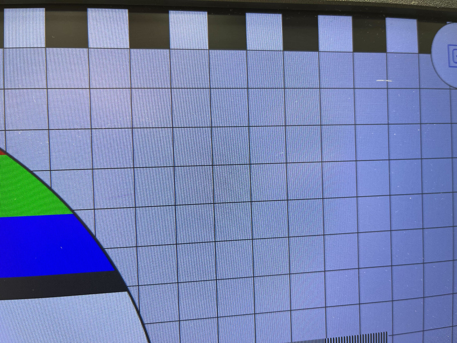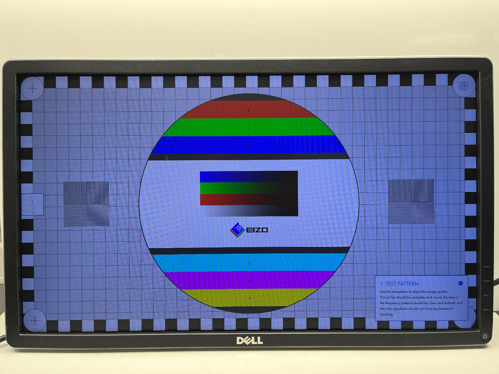*The discoloration on the test pattern photo is an artifact of image compression and not present on the actual display.