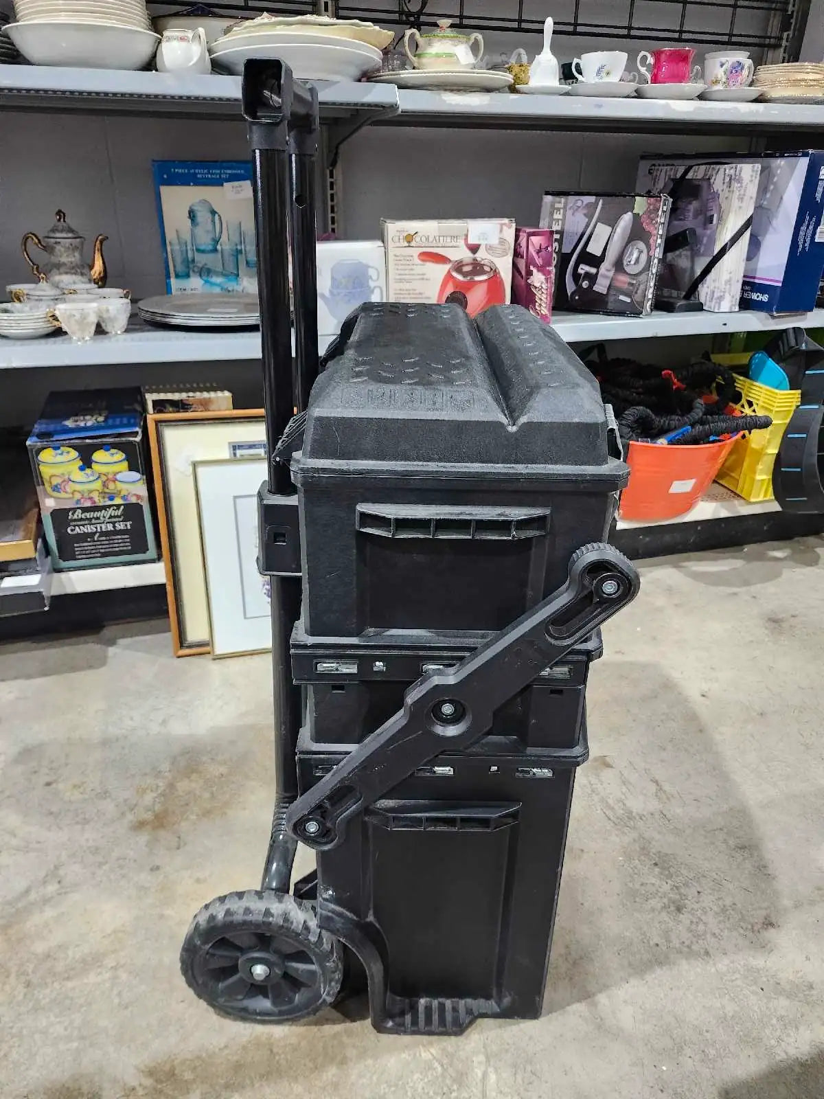Keep your tools organized and ready to roll with this used DeWalt rolling tool box! This mobile work station has a three-tier design with a cantilever rolling system allowing easy access to all three storage areas, plus heavy duty 7-inch wheels. Features: * Three-tier cantilever system * Heavy-duty 7-inch wheels * Telescopic handle for easy maneuverability * Durable construction for tough job site conditions * Measures at 20" wide, 14" deep and 30" tall 6215 3rd St SE, Unit C11 - Rebound Centre Daily 10 AM – 5 PM Local pickup/Delivery available (for a fee depending on location/item). Feel free to drop us a message or visit us in store. Prices subject to GST See more at Reboundcentre.com