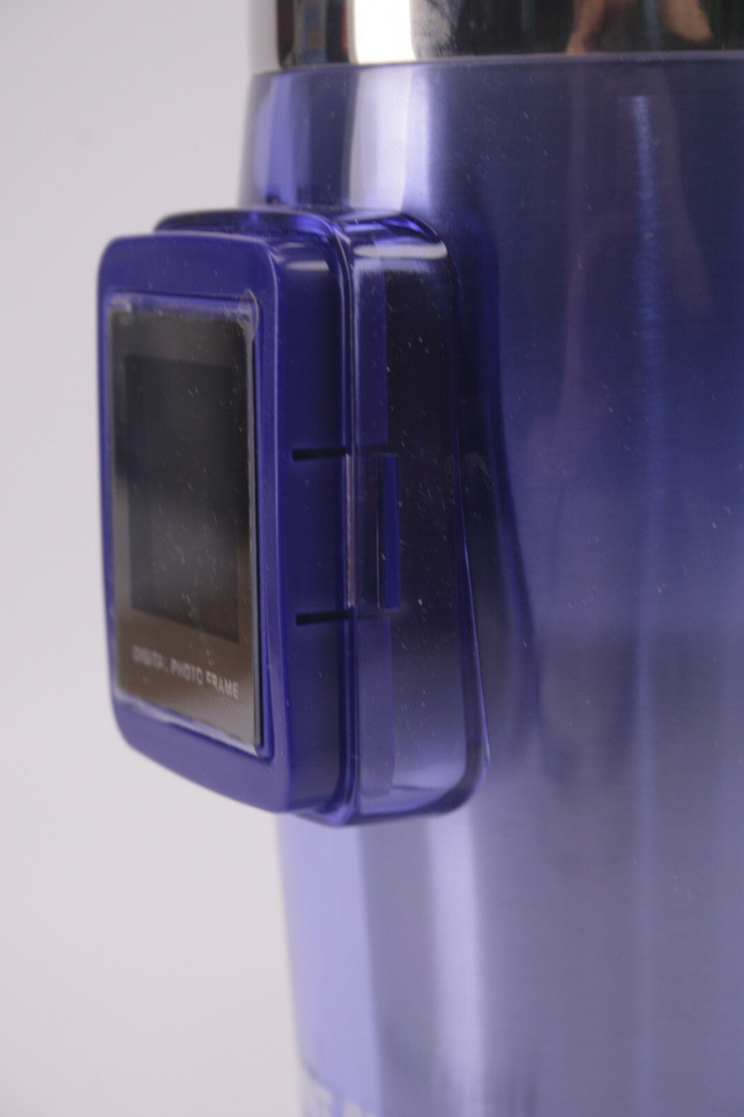 Share your memories on the go with your everyday coffee travel mug. Now upgraded with a screen that showcases your own photos!