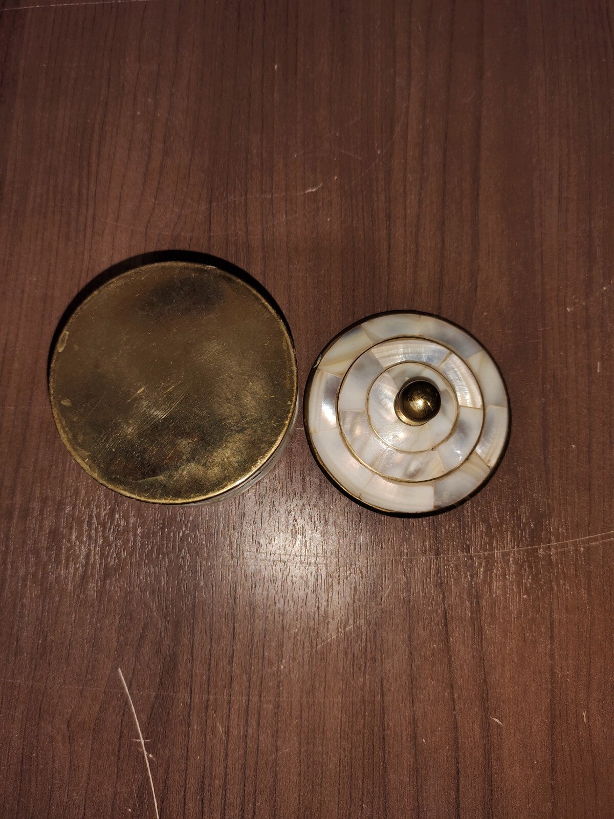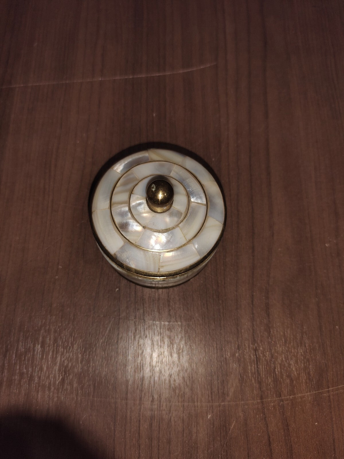 - Mother of Pearl Inlay: The luxurious mother of pearl accents create a striking contrast against the brass finish, adding a sophisticated touch to the trinket box.