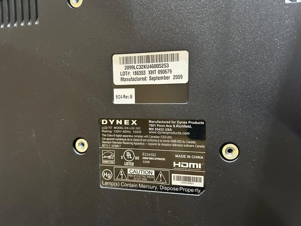 New arrival! In store now! Dynex 32" LCD TV - working perfectly. It's not a smart tv. It does not have a remote.