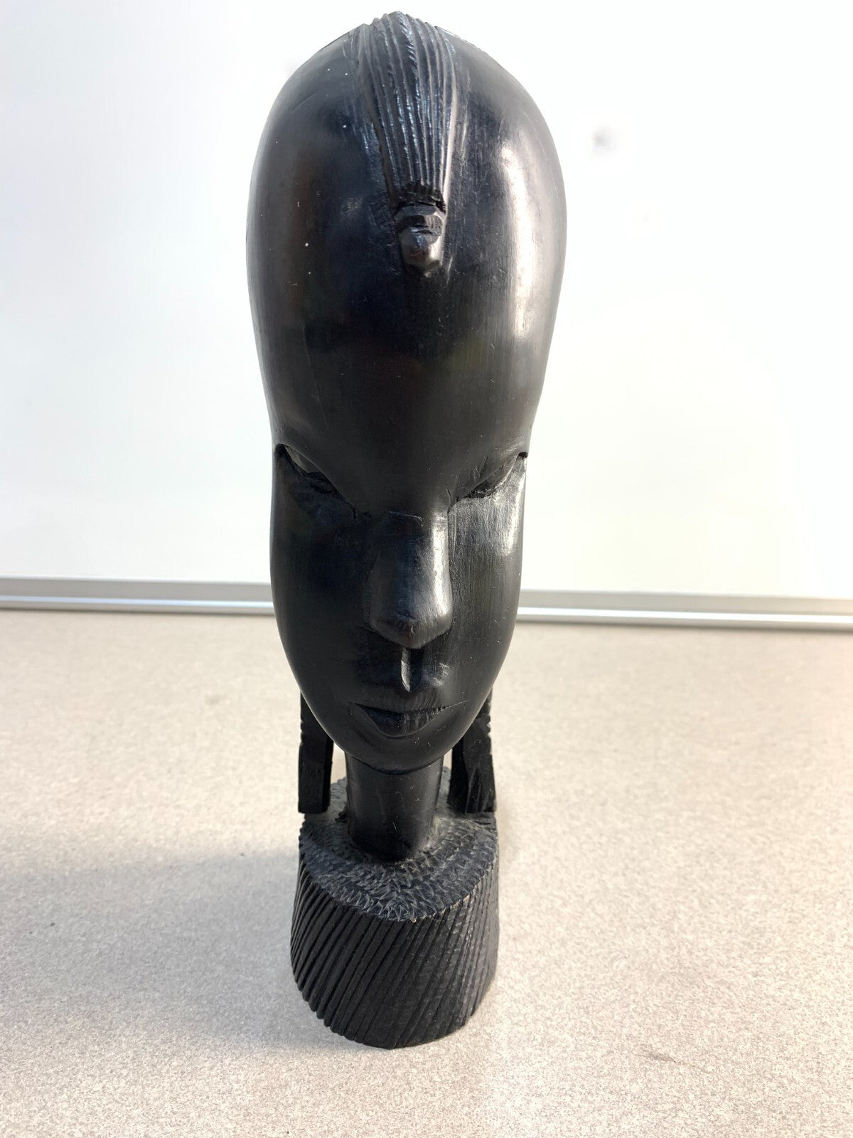 Ebony Wood Bust Carved African Art Tribal Warrior Head Sculpture.