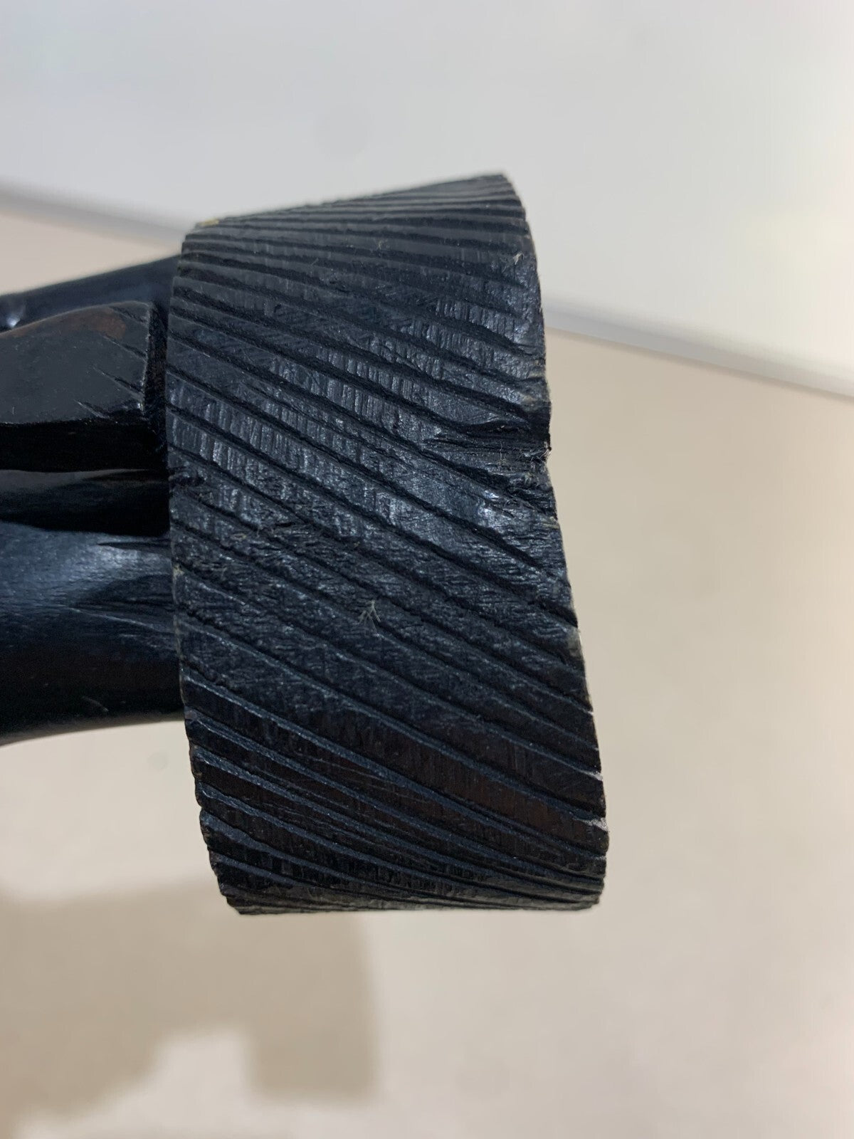 Capture the essence of African artistry with this Ebony Wood Bust, a meticulously carved African Warrior Head Sculpture that embodies the rich cultural heritage of the continent. Each detail is sculpted with precision, bringing to life the strength and spirit of traditional African warfare, a testament to the resilience and artistry of the tribal peoples. Ideal for collectors and enthusiasts of African culture, this piece serves as a striking focal point in any space. Its natural wood material ensures that each sculpture is unique, with its own patterns and grains, making it a one-of-a-kind addition to your collection or as a stand-alone statement piece.