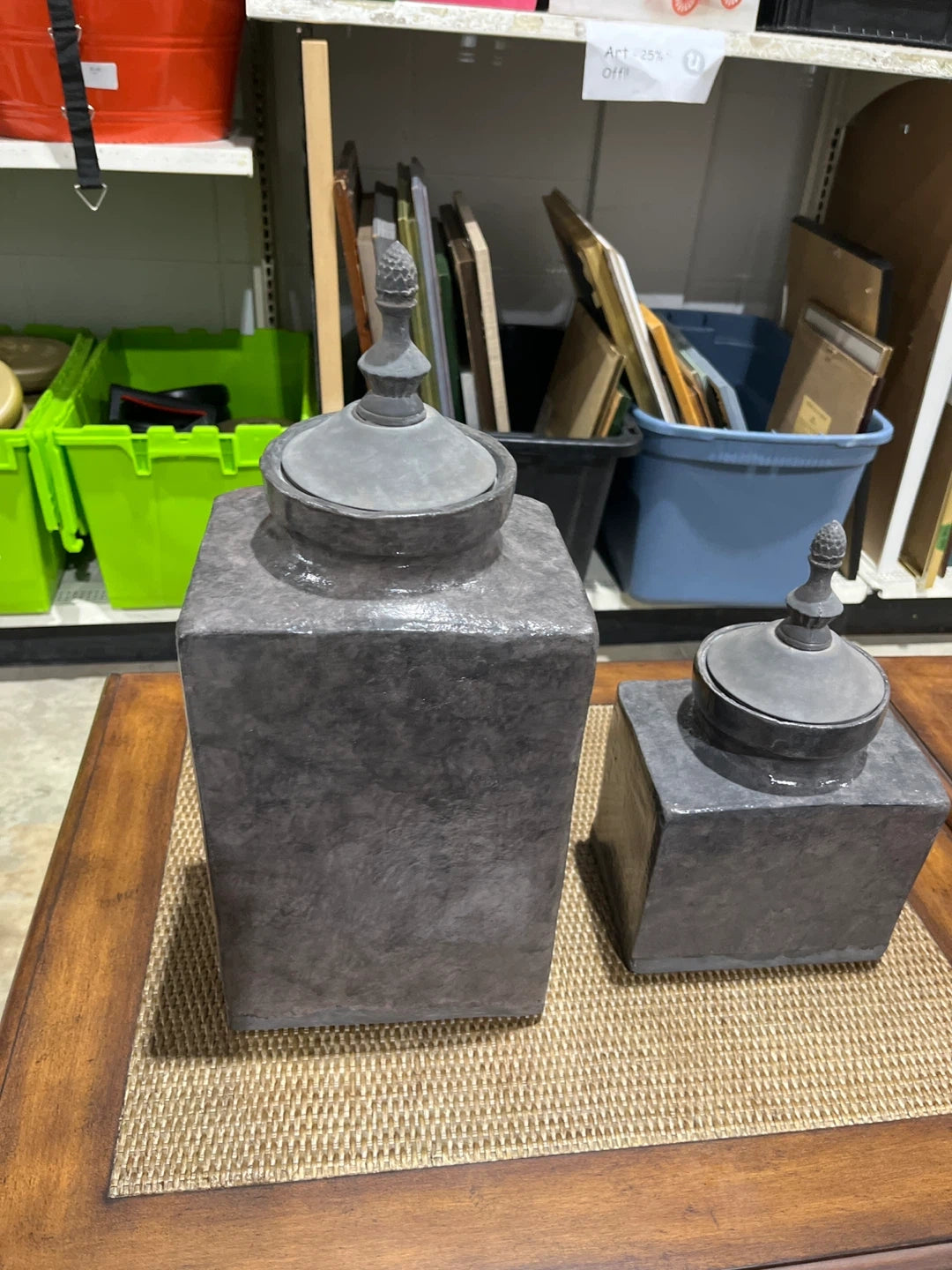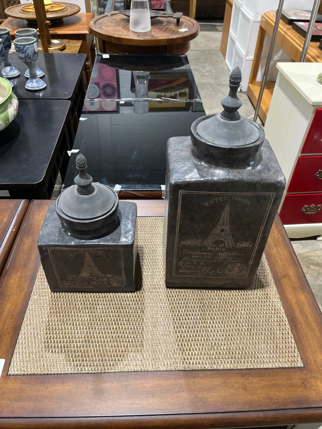 Add a touch of Parisian charm to your home with this set of two decorative canisters! They feature an Eiffel Tower design and are perfect for adding a unique touch to any room. These canisters are in great condition and ready to find a new home! Visit Rebound Centre Thrift Store 6215 3rd St SE, Unit C11 Open daily 10 AM – 5 PM Local pickup available