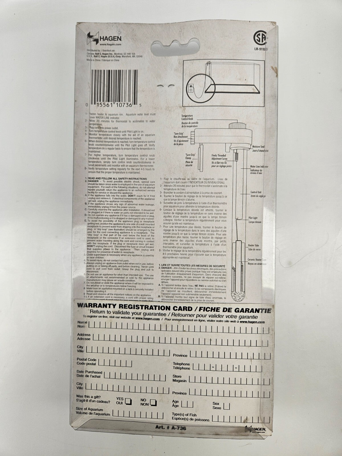 Elite Radiant 50W Aquarium/Fish Tank 8” Heater Thermostat Control Fresh Salt