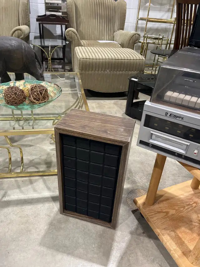 Step back in time with this Empire stereo system, a nostalgic piece that includes a turntable, 8-track player, and receiver, all accompanied by two speakers for a complete audio experience. While this stereo system is used, it is in good working condition, ready to fill your space with vintage tunes and retro vibes.