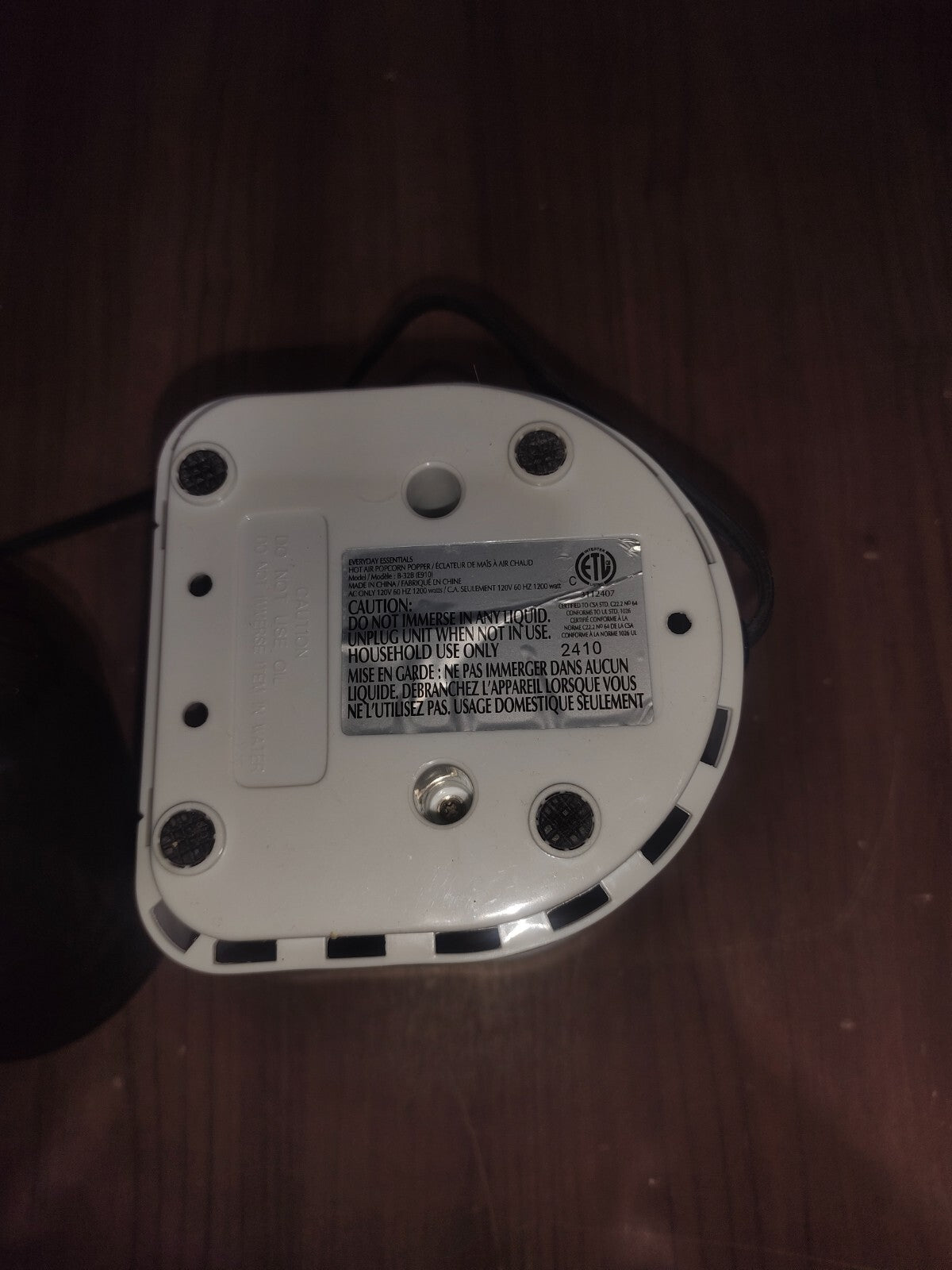 Oil-Free Hot Air Popping - Uses 1,200 W of hot air to pop kernels for a healthier snack