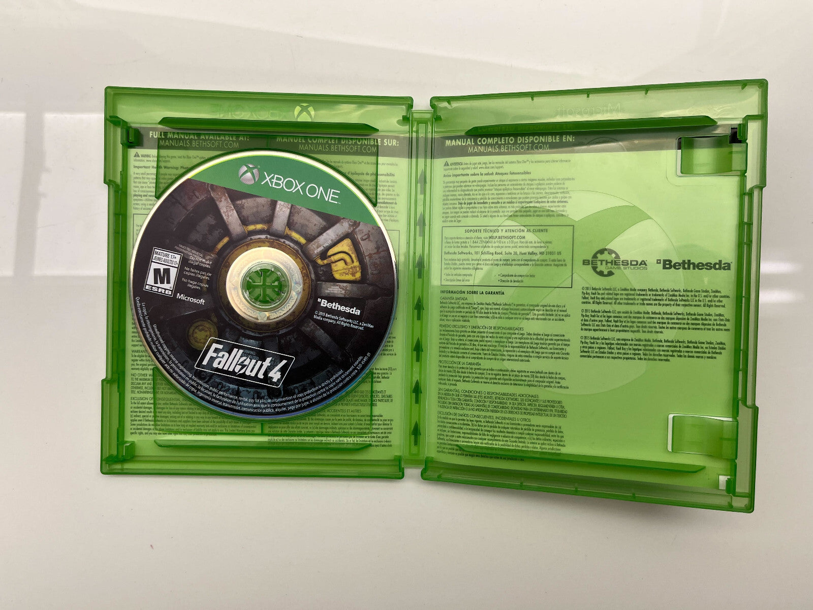 This copy of Fallout 4 for the Xbox One includes the disc and box.