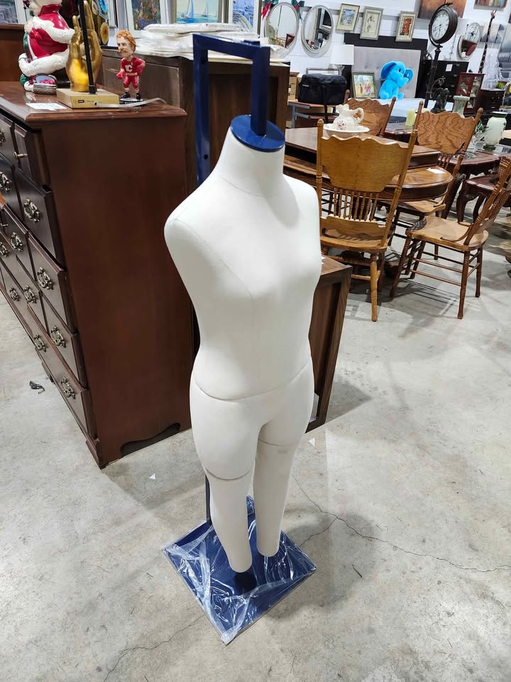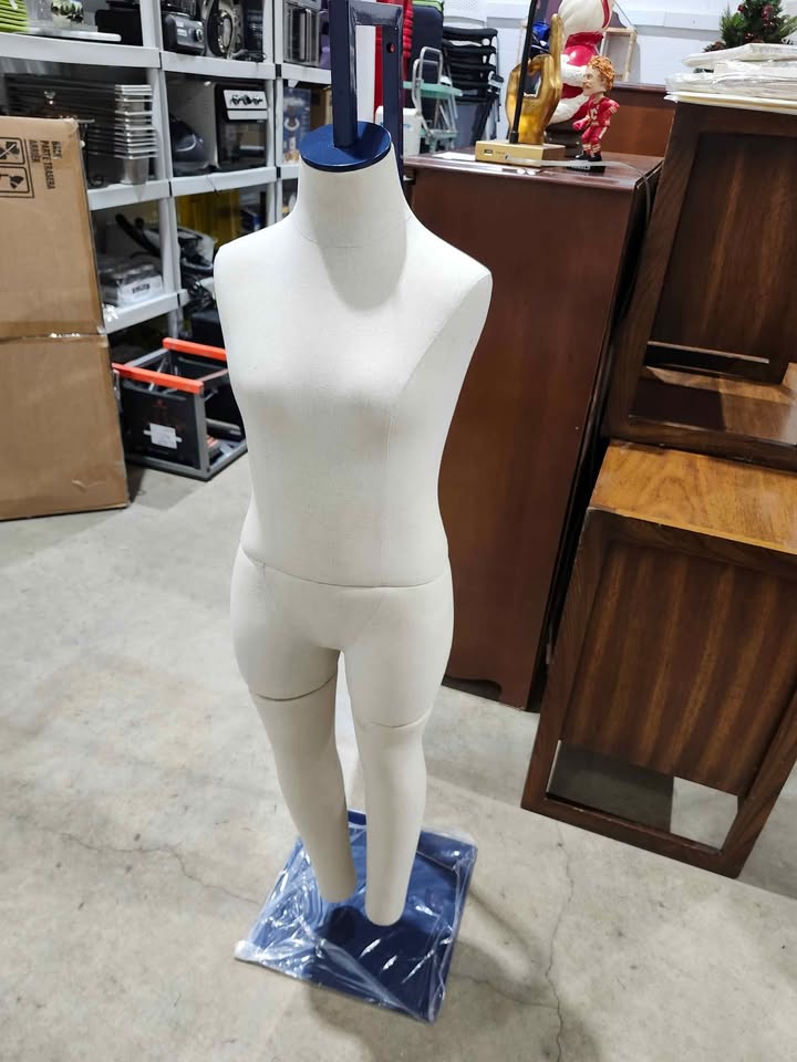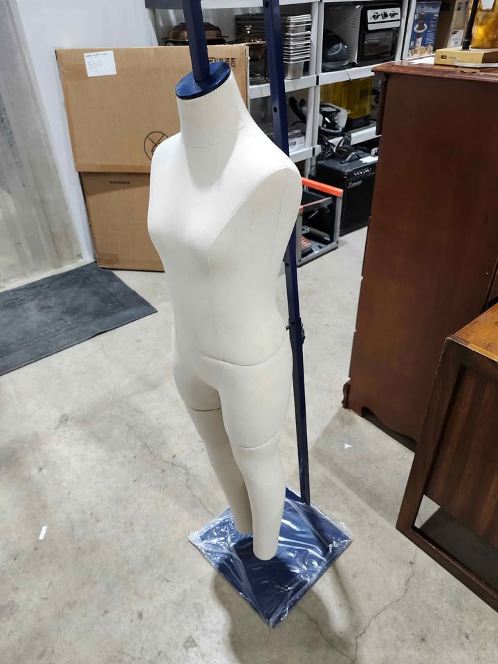Brand new! Mannequin is pinnable and height adjustable. It can be configured either as a full body, torso or lower half. Max height is 55" and can be lowered to 36" in increments. . . . . . . . . .