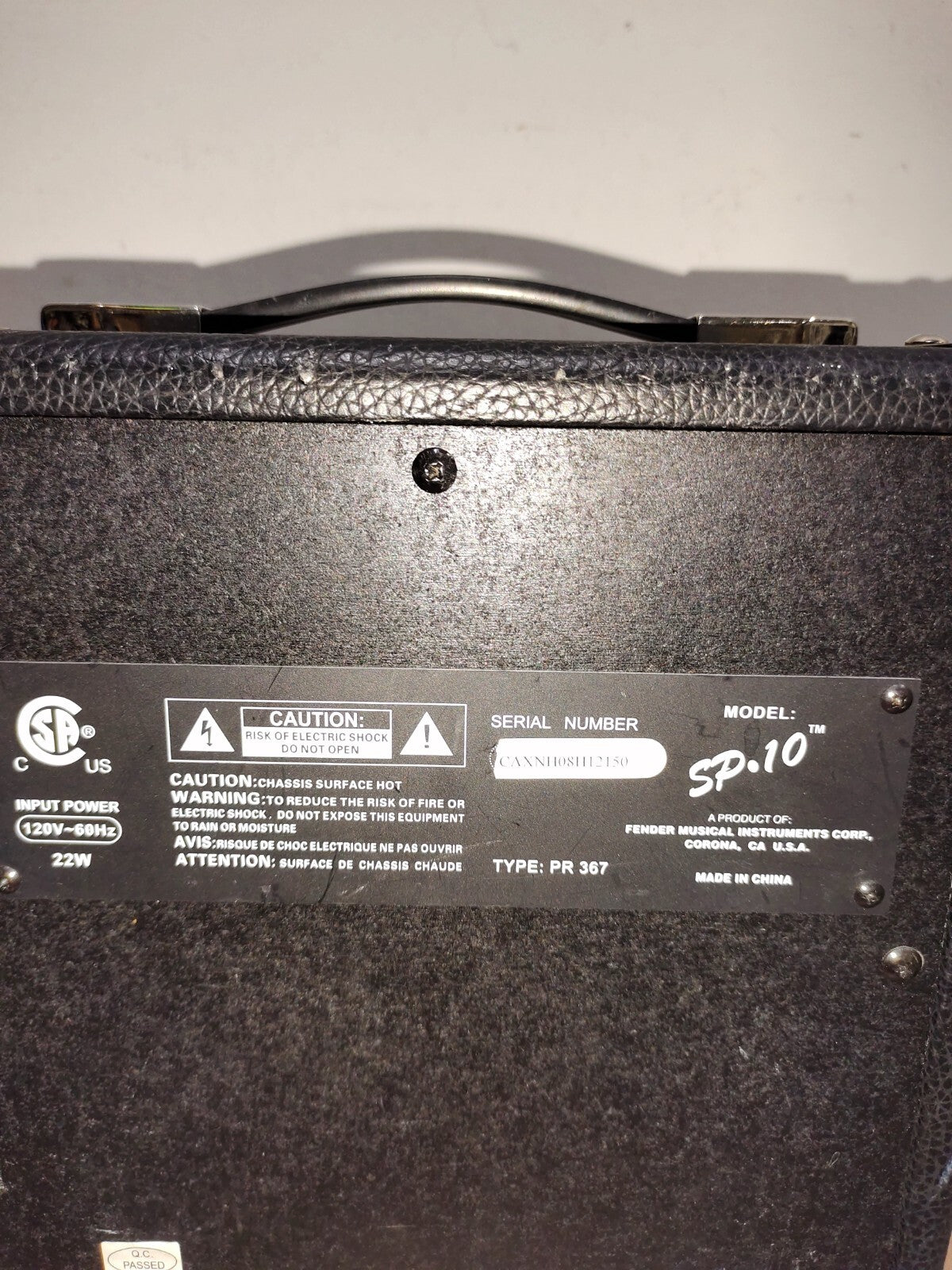 For sale is the Fender Squier SP-10 Portable Amplifier (Model PR-367) , an excellent practice amp for beginners or musicians on the go. With its compact design and high-quality sound, the SP-10 is perfect for bedroom practice, small performances, or jamming with friends. Whether you're just starting out or need a reliable portable amp, the Fender Squier SP-10 offers great value and performance.