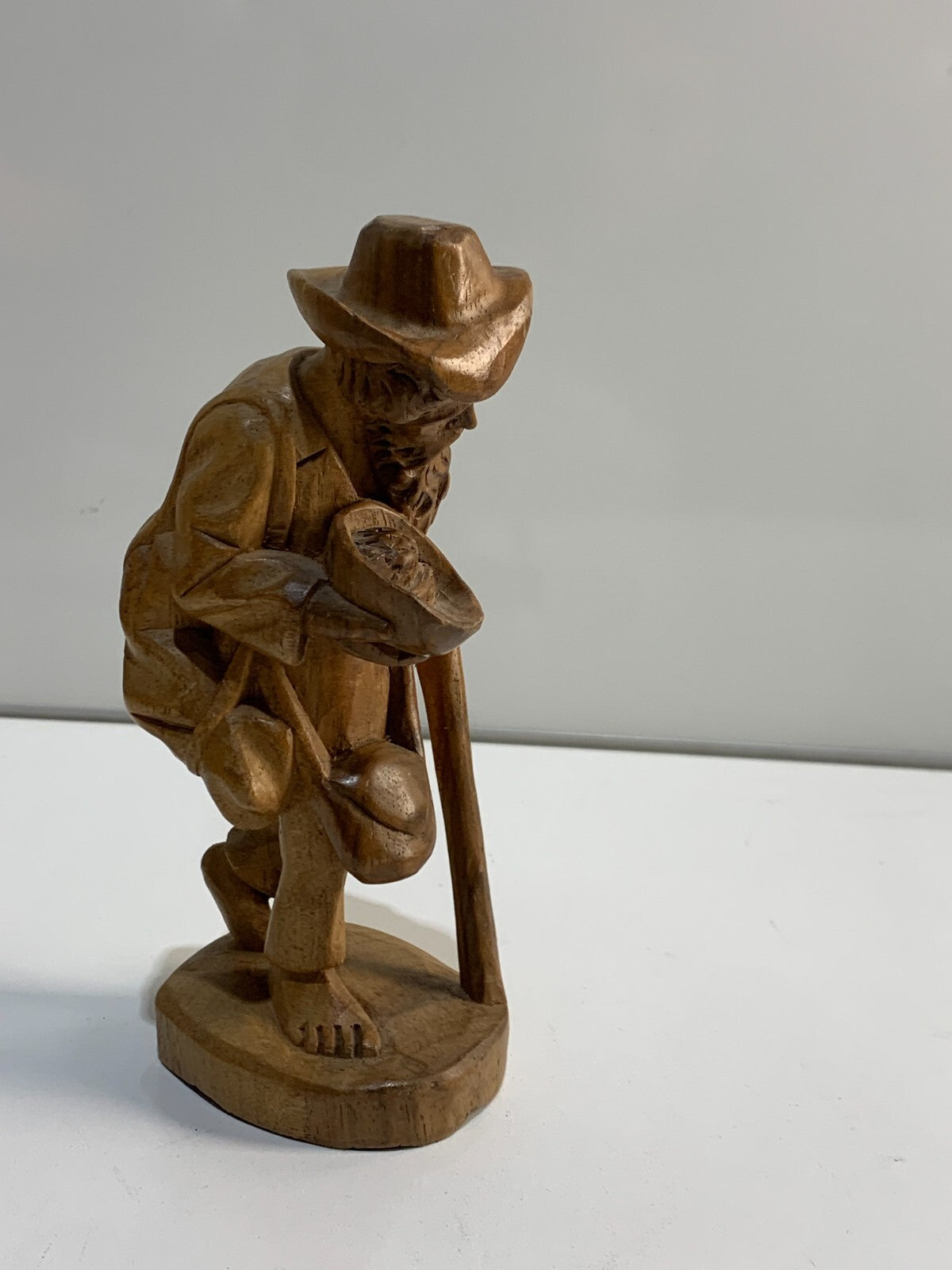 FOLK ART HAND CARVED WOODEN FIGURINE OF TRAVEL MAN