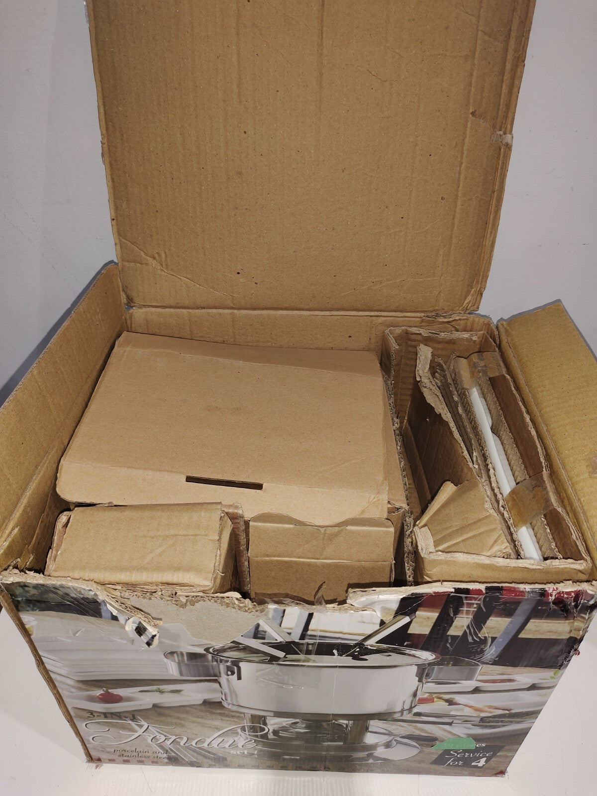 For sale is a 3-in-1 Fondue Set , featuring a combination of porcelain and stainless steel , perfect for creating a memorable dining experience. Whether you're preparing cheese, chocolate, or broth fondue, this versatile set is designed for both functionality and style. Ideal for gatherings, family dinners, or special occasions.