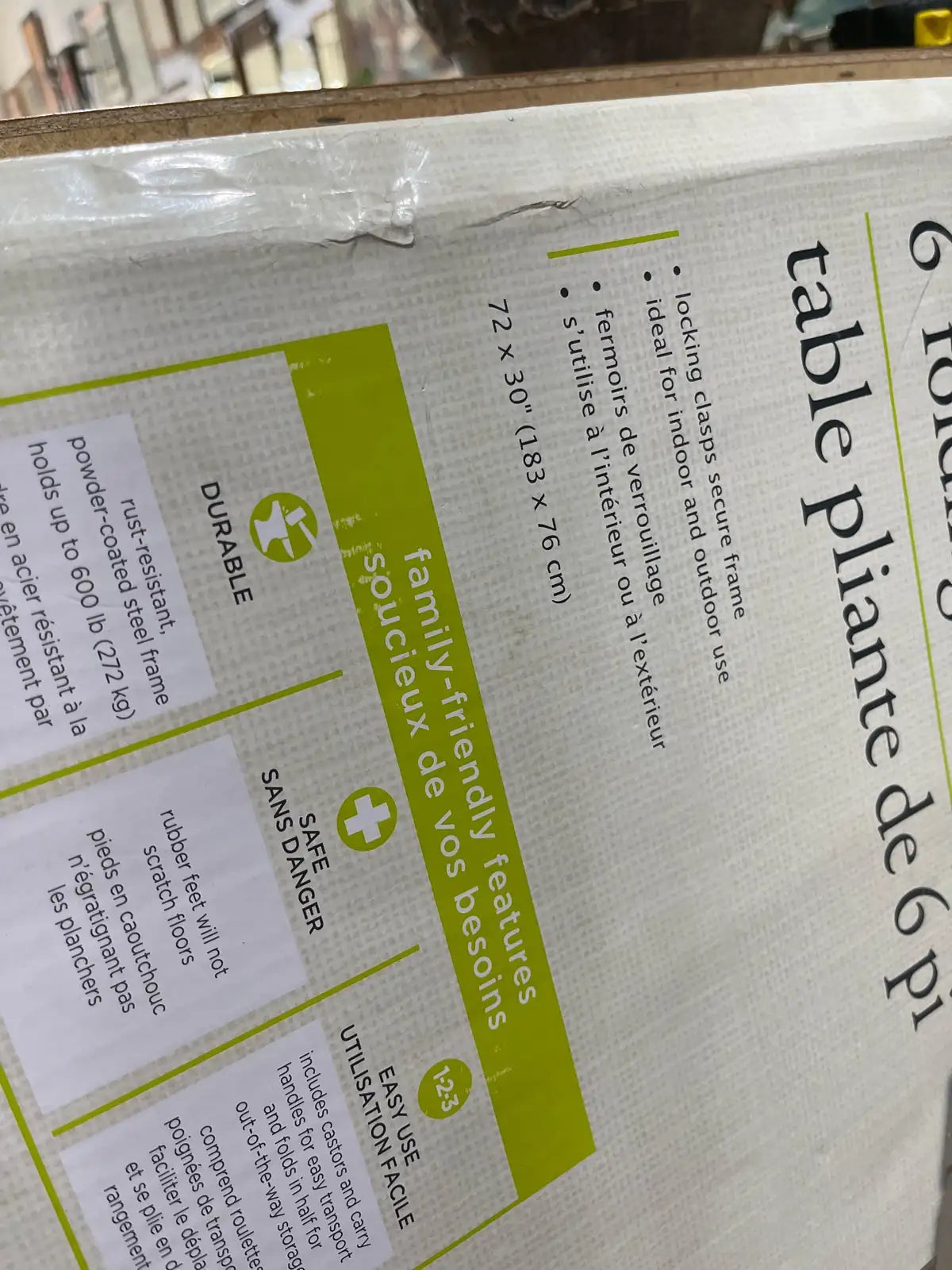 This For Living 6-ft portable folding table offers a convenient and durable surface for both indoor and outdoor use, featuring a robust plastic top and metal frame that supports up to 600 lbs. The table's dimensions are 72x30 inches (183x76 cm), making it ideal for various activities. The price is $75+5%GST 6215 3rd St SE, Unit C11 - Rebound Centre Daily 10AM - 5PM * Locking clasps secure the frame * Family-friendly features * Easy utilization Don't miss out—if you're seeing this ad, the table is still available!