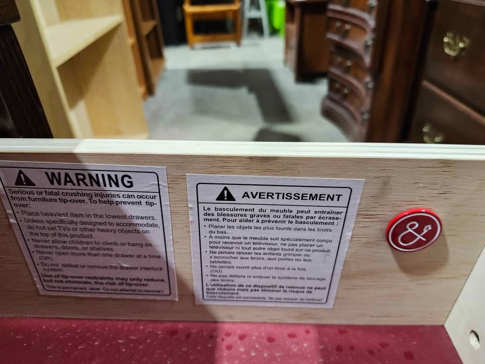 Here's a lovely wood dresser with six drawers! It's a great piece for adding storage to any bedroom or living space. The drawers overall are smooth however the top 2 drawers are a little stiff. The PB wood has a nice, warm tone that would complement a variety of decor styles. 5ft wide, 20" deep and 33" tall. 6215 3rd St SE, Unit C11 - Rebound Centre Daily 10 AM – 5 PM Local pickup/Delivery available
